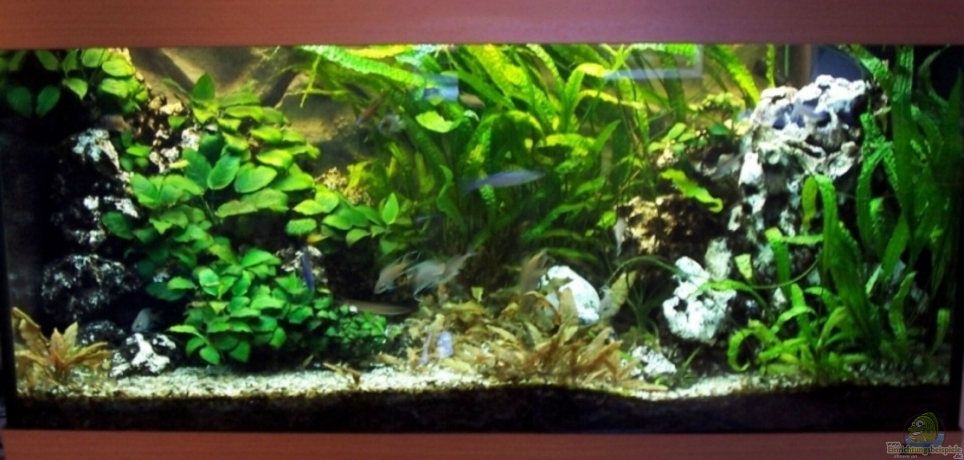 -Eine selbst gebaute Rückwand aus Styropor und Beton, die sie hinter dem Aquarium befindet. -Eine selbst gebaute CO2° Anlage