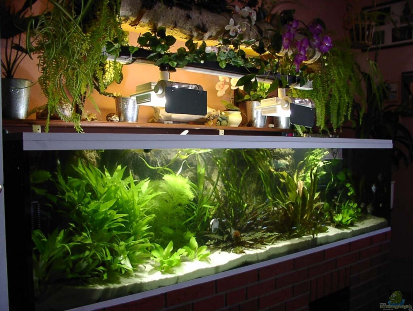 Unverkleidetes Aquarium auf selbst gemauertem Sockel mit Steinriemchen beklebt. Dieses Becken musste ´heute´ zu Gunsten eines grö??eren Beckens (840 Liter) weichen. Stelle dieses neue Aquarium in der nächsten Zeit nach der Einfahrphase vor.