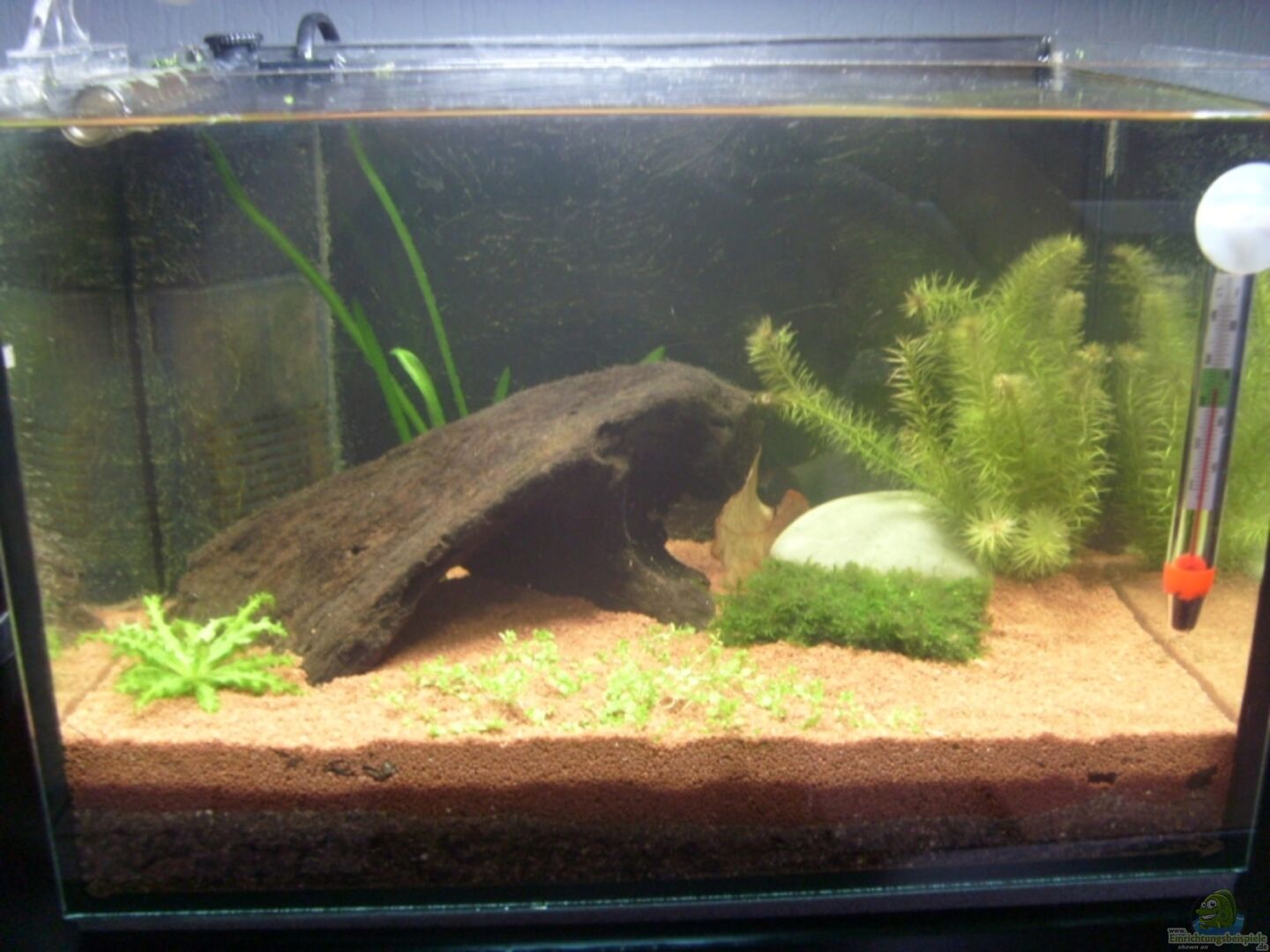 -kleiner Klebebandstreifen (in Blau) an der linken Scheibe als Orientierung für den Teilwasserwechsel (nur so als Anregung)