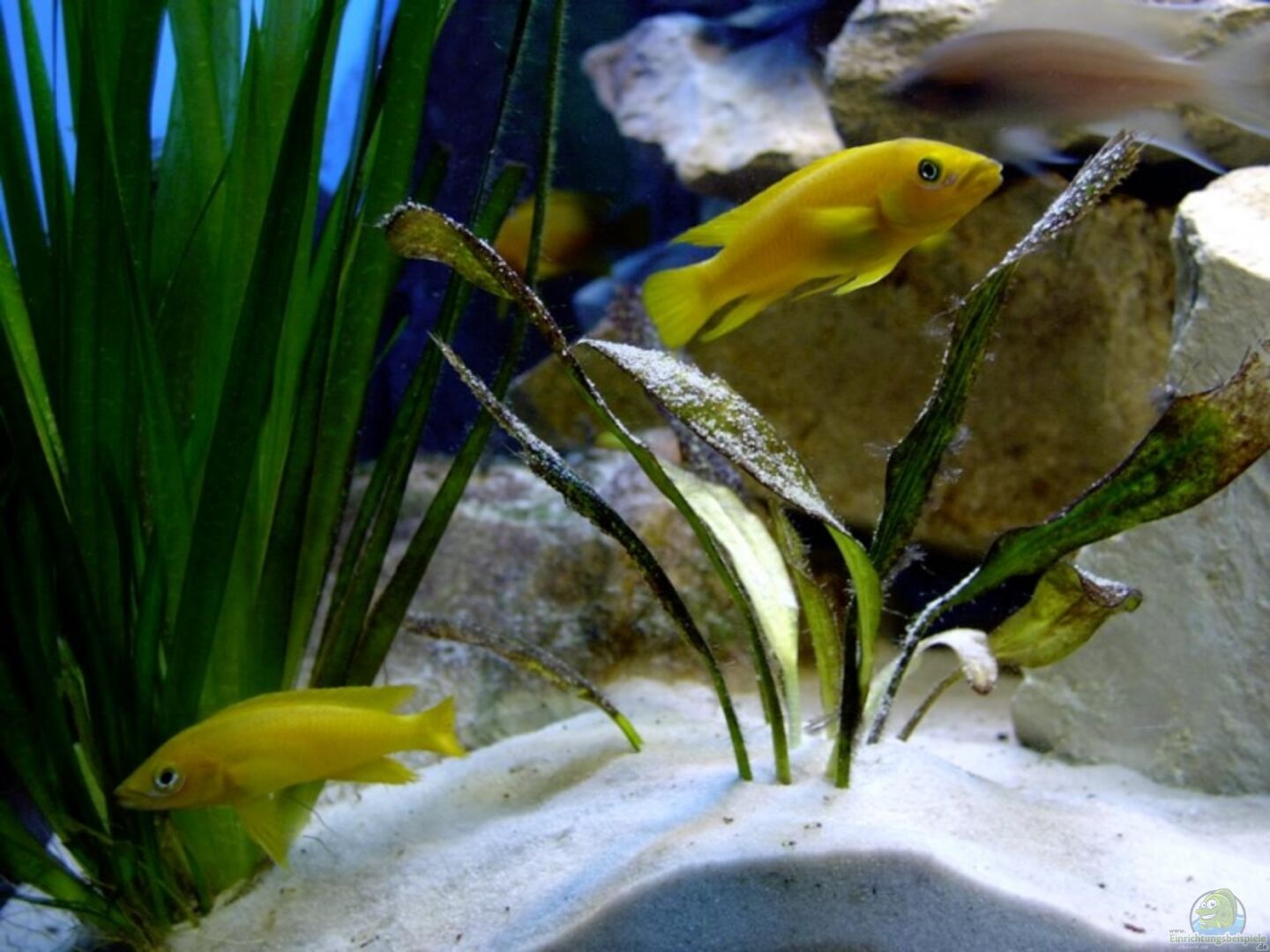 Hier findest Du traumhaft schöne Aquarien, die mit Buntbarschen der Art Tyrannochromis nigriventer aus dem Malawisee besetzt sind.