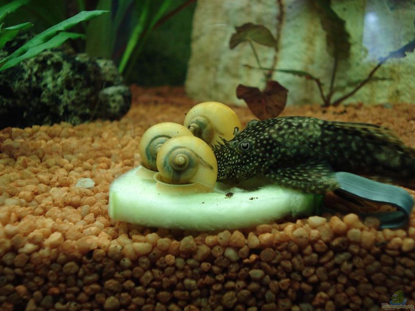 Meine Apfelschnecken und ein Blauer Antennenwels beim Gurke fressen von Sven Seidel (18)