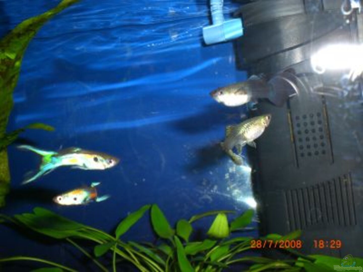 5 Guppy (2 maennchen und 3 weibchen), 2 blackmolly in den farben orange, 1 Mosaikfadenfisch, 1 Wels klein ca 3cm