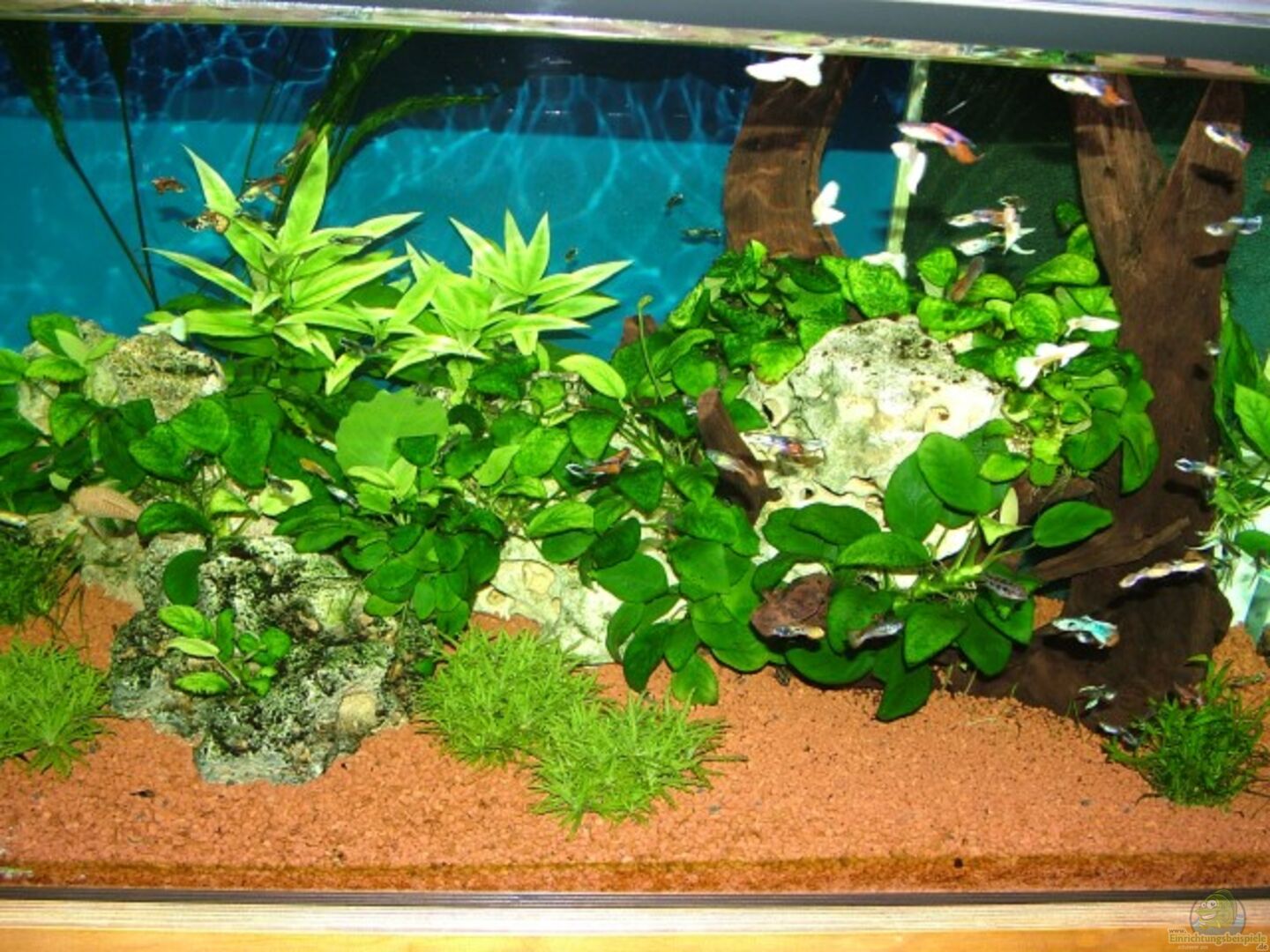 im vordergrund: pogostemon helferi und neuseelandgras im ganzen becken ck 15 anubias verteilt und die hintergrundpflanzen kann ich leider nicht beschreiben, hat mir ein freund vom urlaub mitgebracht.