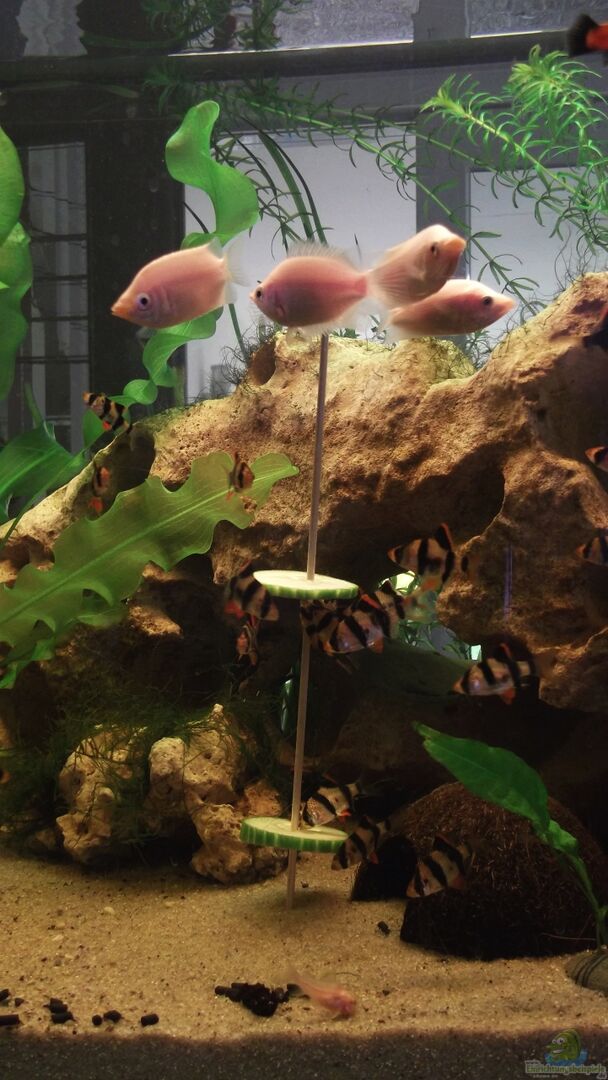 6 goldene Saugschmerlen Gyrinocheilus aymonieri var. Gold Goldfarbene Zuchtform der Wildform. Kann in freier Natur wohl bis zu 30 cm gro?? werden. In Gefangenschaft sollen 15-20 cm wohl realistischer sein. Jungtiere können im Schwarm gehalten werden. Je älter und grö??er die Tiere werden desto aggresiver werden sie aber vor allem gegenüber Artgenossen. Ursprünglich stammt dieser Fisch aus Südostasien und lebt dort vor allem in strömungsreichen Bächen. Fressen teilweise Algen - allerdings [...]