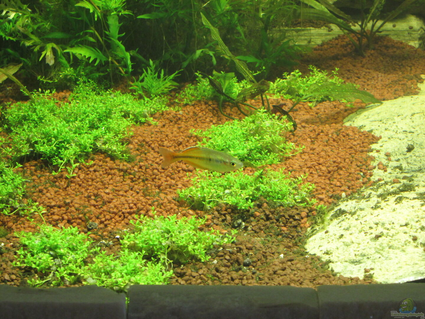 1 Epalzeorhynchos bicolor - Feuerschwanz 12 Crossocheilus siamensis (Babys) - siamesische Rüsselbarbe Die Tiere aus dem Trigon sind umgezogen. 6m/4w Melanotaemia boesemani - Harlekin Regenbogenfische Beim ersten Einkauf wurden mir nur die Kerle eingepackt. Der Chef hat dann diese Woche noch die Mädels mitgegeben. Was für eine Wiedersehensfeier :-) 2 Vittina coromandeliana - Zebrarennschnecke einige Caridina multidentata - Amanogarnele ziehen aus dem kleinen Becken [...]