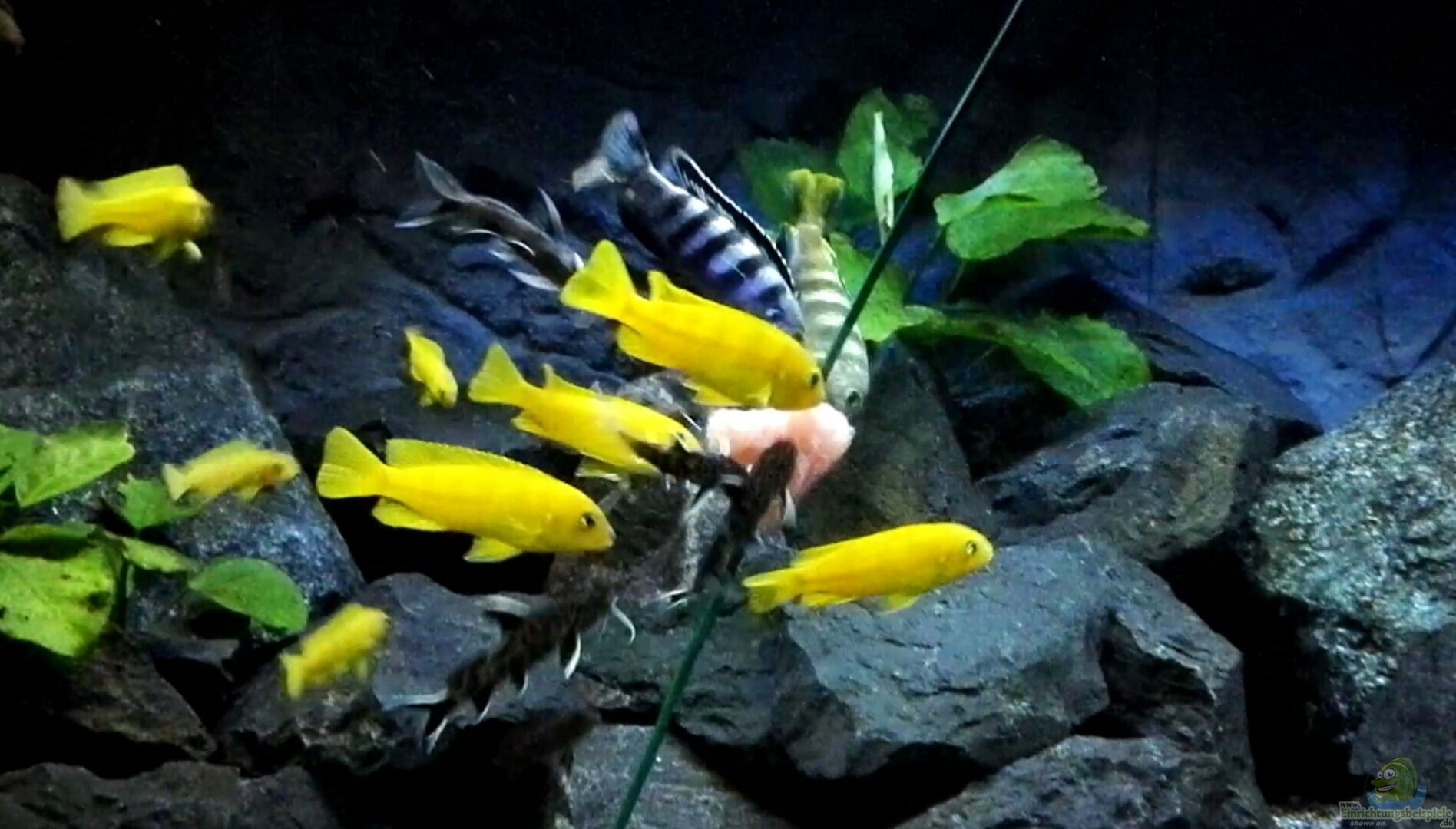 Pseudotropheus saulosi, Cynotilapia zebroides cobuecobue und Synodontis lucipinnis