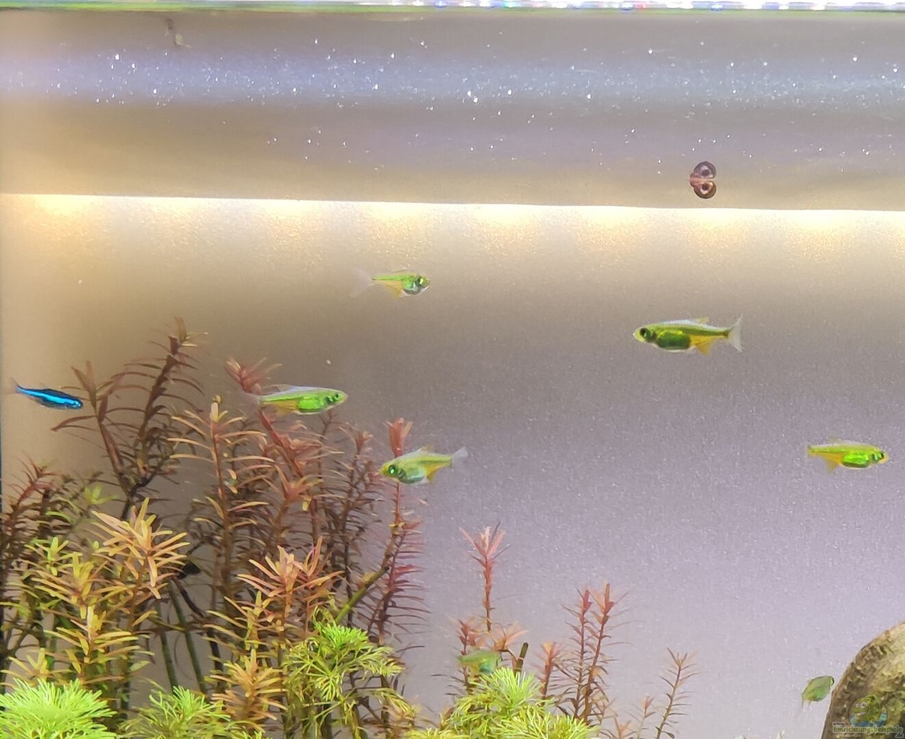- Microdevario kubotai (neongrüne Smaragdbärblinge) - Paracheidon simulans (Blaue Neons) - Neocaridina (Garnelen) - Radix balthica (Yoda Schnecken, Eiförmige Schlammschnecken) - Planorbarius corneus (Posthornschnecken)
