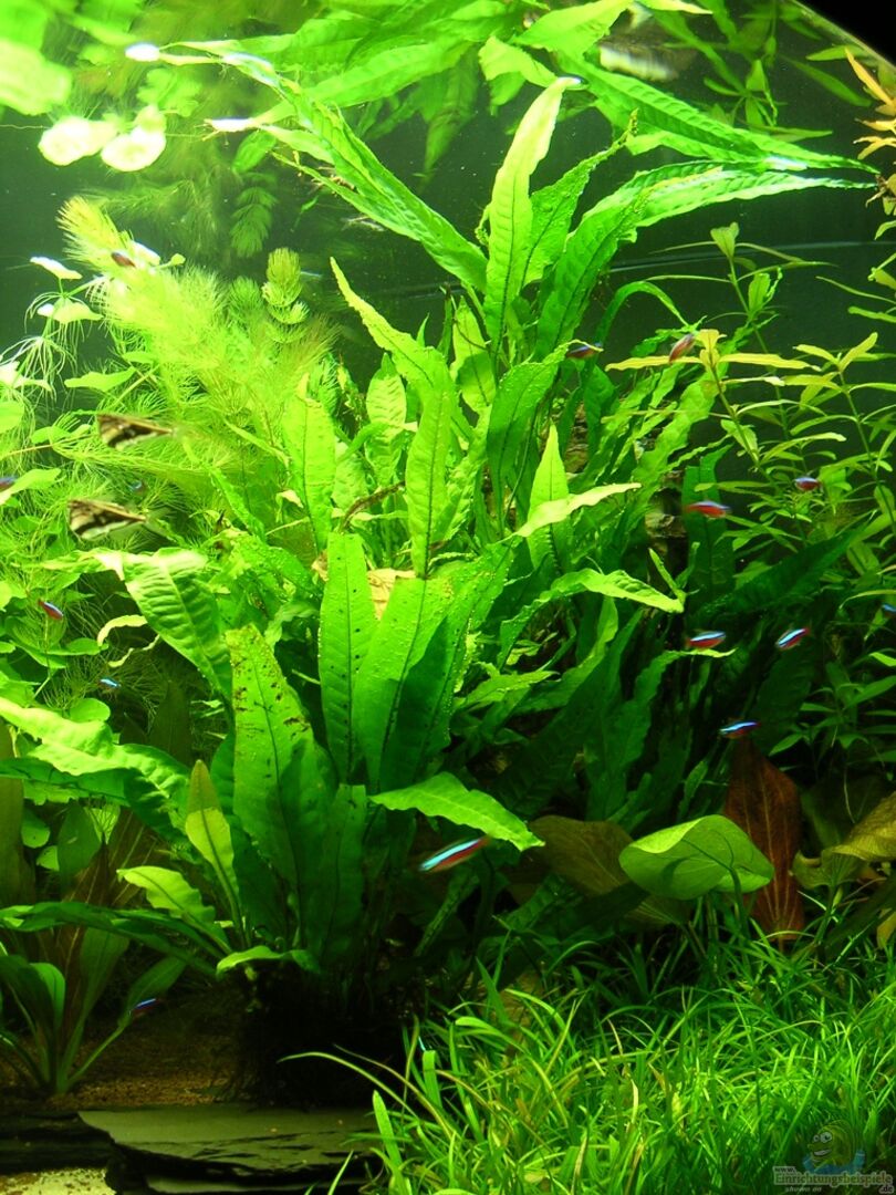 1x Echinodorus `Red Rubin` 1x Echinodorus `Red Flame` 8x Helanthium tenellum (Echinodorus tenellus) Grasartige Zwergschwertpflanze 4x Hydrocotyle leucocephala Brasilianischer Wassernabel, Wasserefeu 2x Hygrophila polysperma Indischer Wasserfreund 3x Microsorium pteropus Schwarzwurzelfarn, Javafarn 2x Sagittaria pusilla Zwergpfeilkraut; am19.09.2011 eingezogen 1x Vesicularia dubyana Javamoos ca. 10 Erlenzäpfchen (Amtra) und 3 Seemandelbaumblätter (Dennerle) alle 2-3 Wochen neu Düngung: [...]