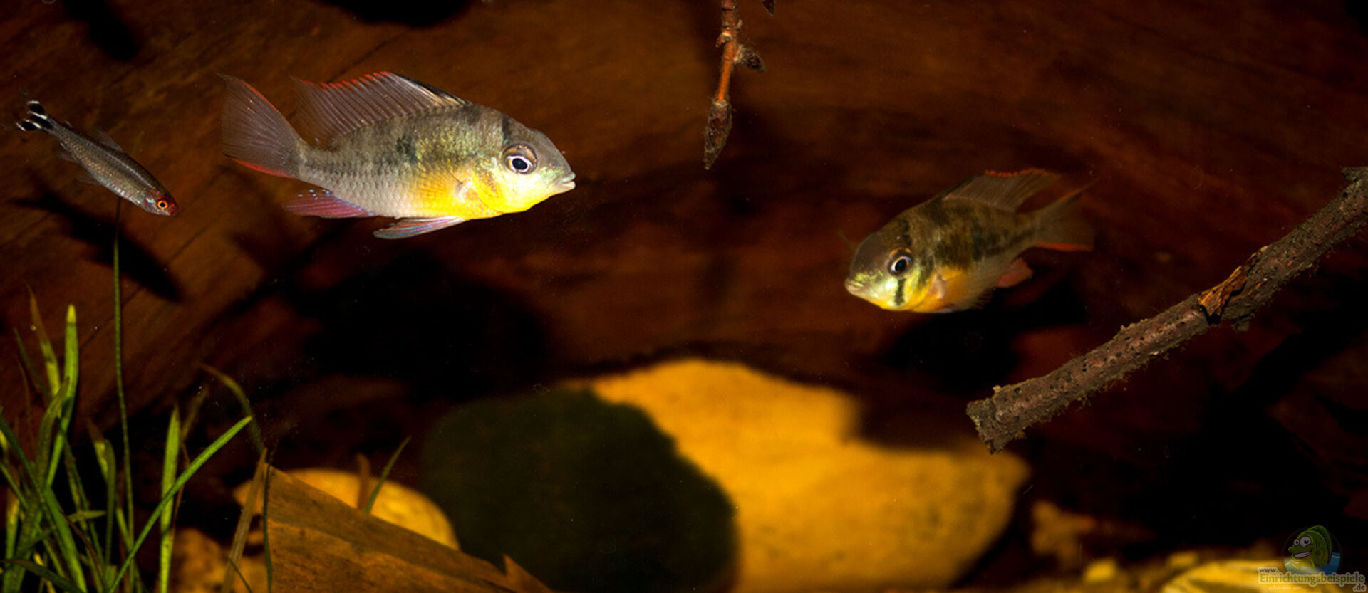 Hier findest du Infos zur Haltung und Beispiele für die Aquariumeinrichtung für Mikrogeophagus ramirezi (Südamerikanischer Schmetterlingsbuntbarsch).