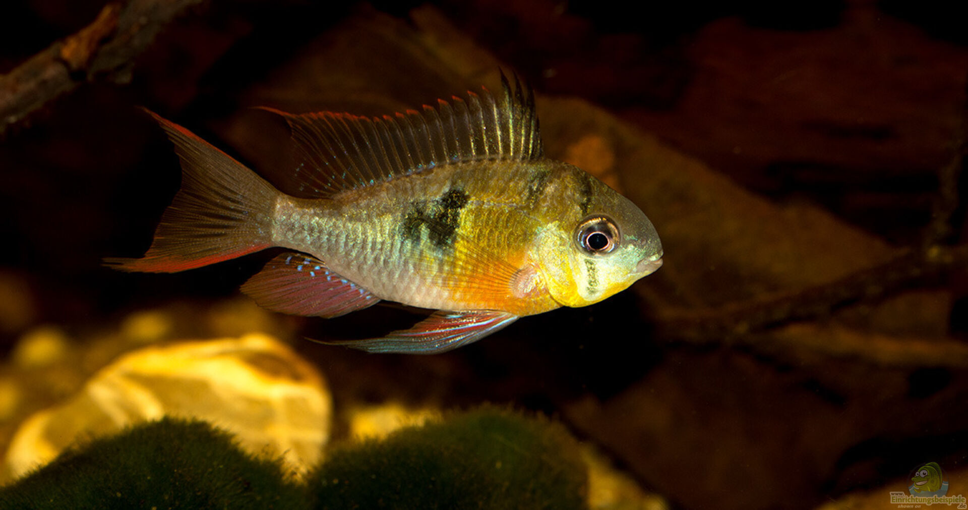 Hier findest du Infos zur Haltung und Beispiele für die Aquariumeinrichtung für Mikrogeophagus ramirezi (Südamerikanischer Schmetterlingsbuntbarsch).