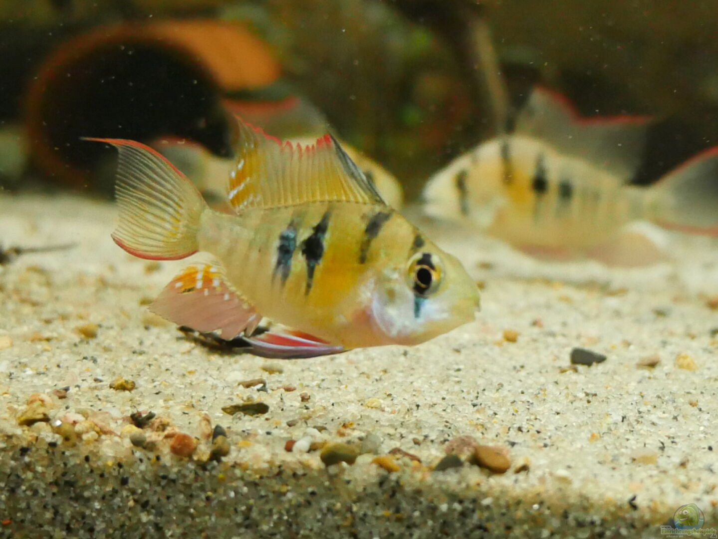 Hier findest Du traumhaft schöne Aquarien, die mit Mikrogeophagus altispinosus (Bolivianischer Schmetterlingsbuntbarsch) aus Südamerika besetzt sind.