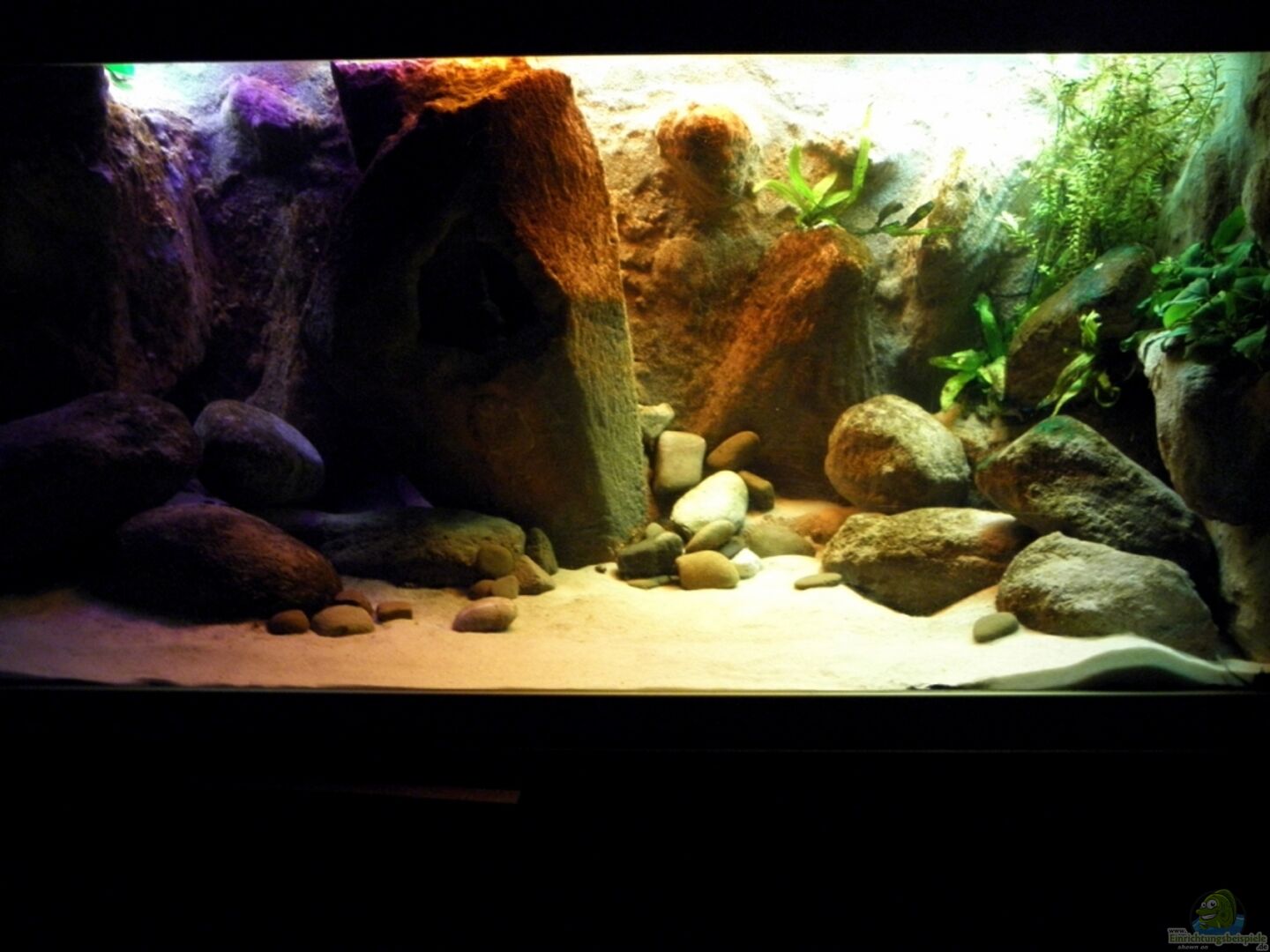 Habe das Aquarium bei Ebay ersteigert , mein Schwager (Laey) war so nett und hat es für mich umgebaut . Das Aquarium hat einen 3Kammerfilter, einen beschichteten Boden, Rückwand und Seitenscheiben. Eine getrennt laufende 2flammige Beleuchtung Farbfolien