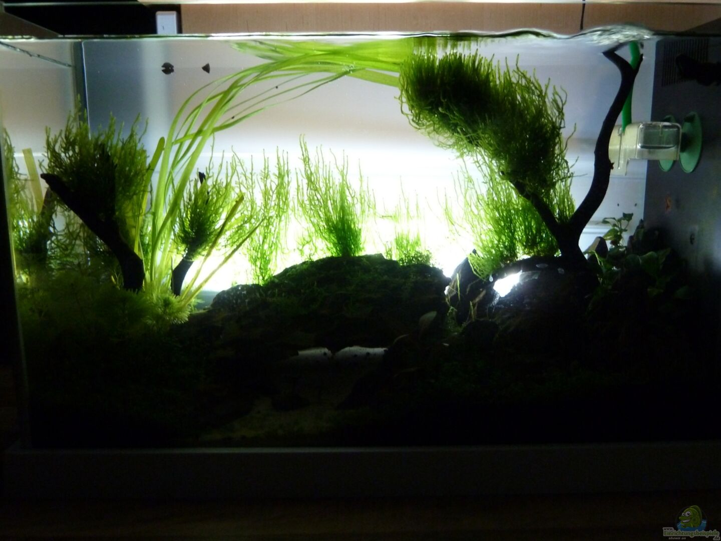 Fluval Spec 5 in wei?? Filter befindet sich abgetrennt vom Becken "unsichtbar" auf der rechten Seite.