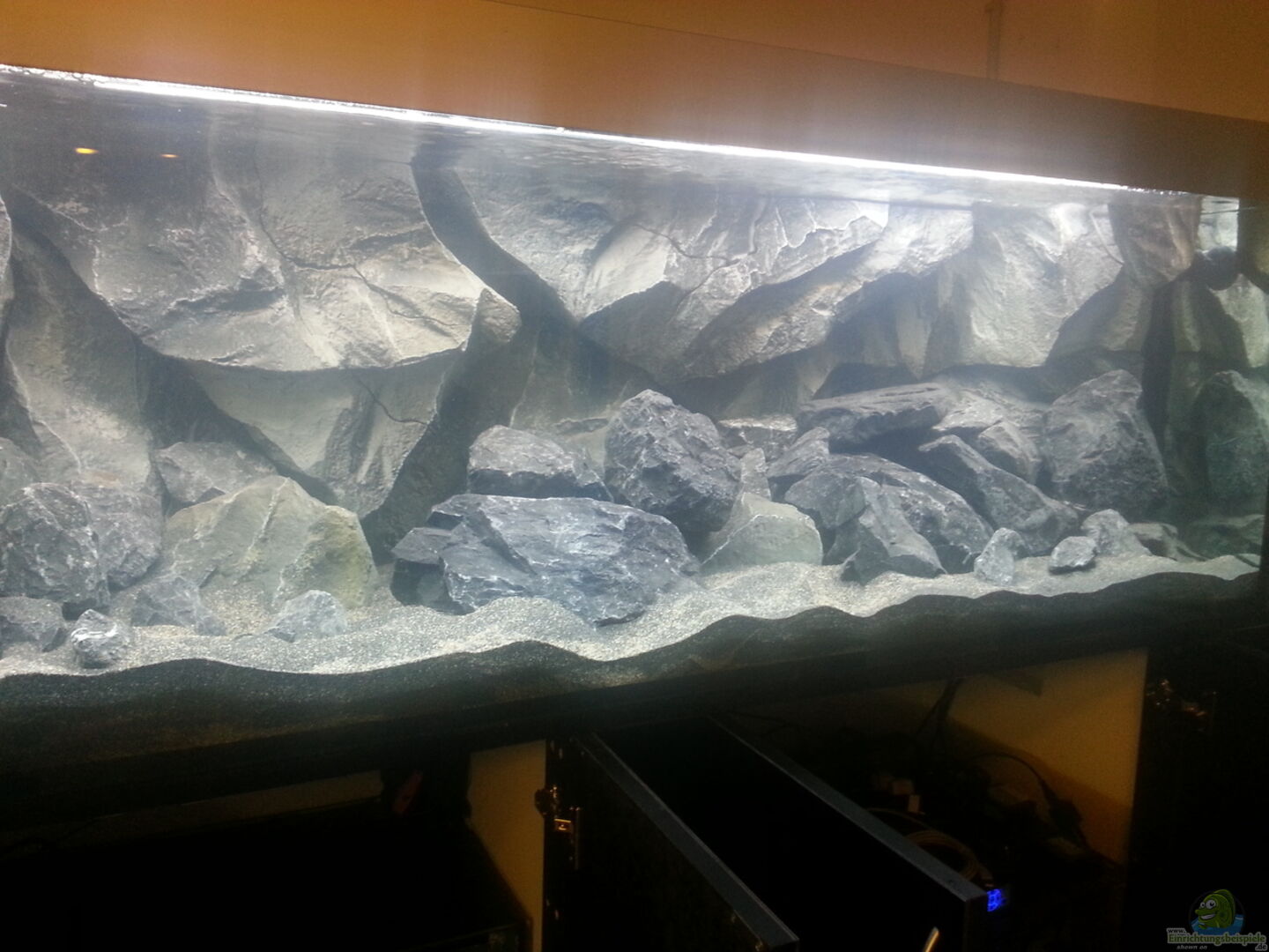 Das AQ hat 12mm Glas, Stossverklebt mit Sicherheitsnaht von der Fa. Aquarienkontor aus Haltern (Vielen, vielen Dank an Tim Stenzel für die top Beratung und Betreuung!!! Kann ich nur empfehlen!!!) Hinten links befindet sich ein ??berlaufschacht inkl. 3 Bohrungen für 4 Kammer Bio-Aussenfilter-System mit insges. 128 Ltr. Hinten rechts befindet sich noch ein Diagonalschacht inkl. 2 Bohrungen für den Anschlu?? eines Topf-Aussenfilters. Da jedoch das Filtervolumen des Filterbeckens ausreicht [...]