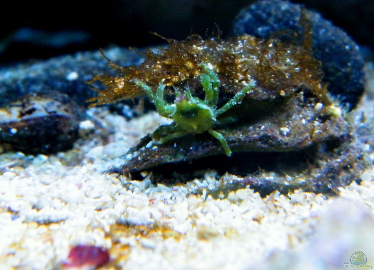 Hier findest du alle wichtigen Infos zur Haltung und Beispiele für die Einrichtung deines Aquariums für Mithraculus sculptus (Grüne Spinnenkrabbe).