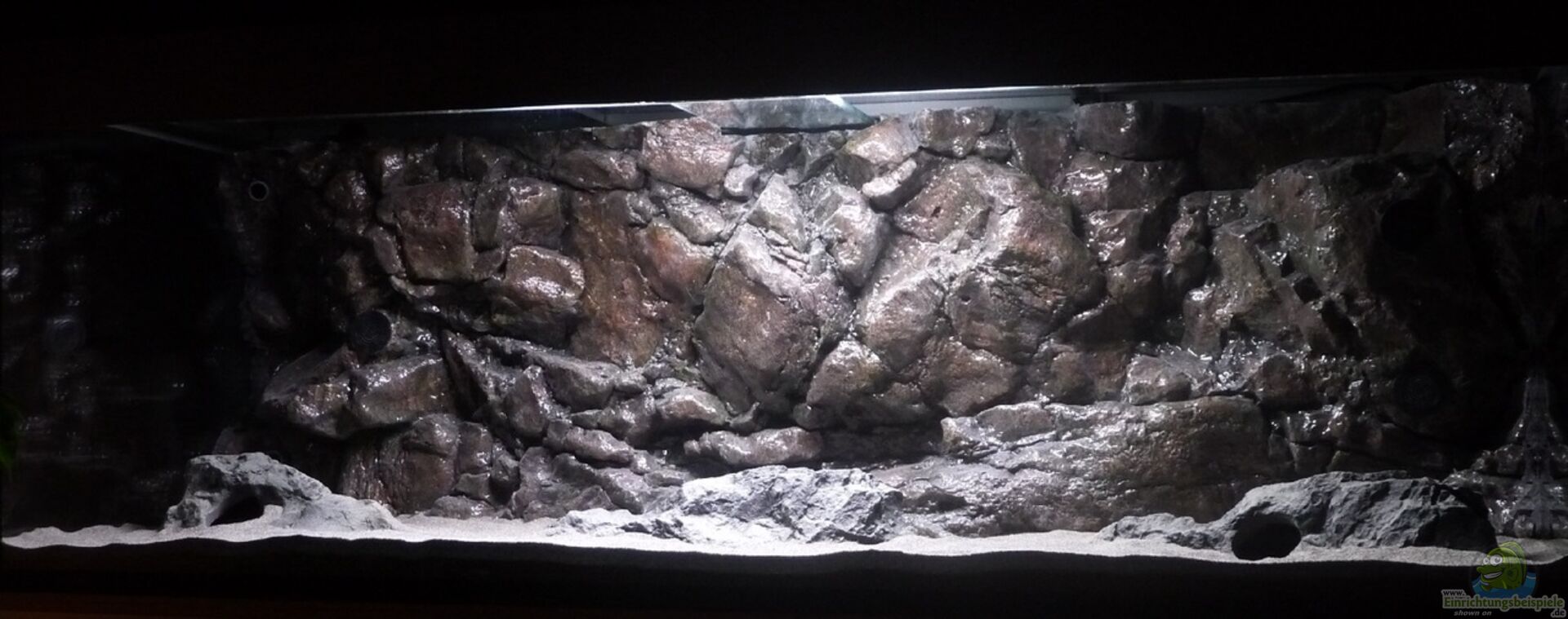 3D- Rückwand: Vom Aquarienbauer wurde mir eine Rock Zolid 3D- Rückwand im Design Komodo eingebaut. Diese Rückwände werden hochwertig hergestellt mit sehr schönen 3D-Effekten. Die Silikonnähte wurden passend zur Rückwand mit Kies beschichtet. Im Bereich der Rückwand wurde die rechte Kopfseite des Beckens mit schwarzen Silikon verdeckt um nicht hinter die Rückwand zu sehen. <><><><><><><><><><><><><><><><><><><><><><><> [...]
