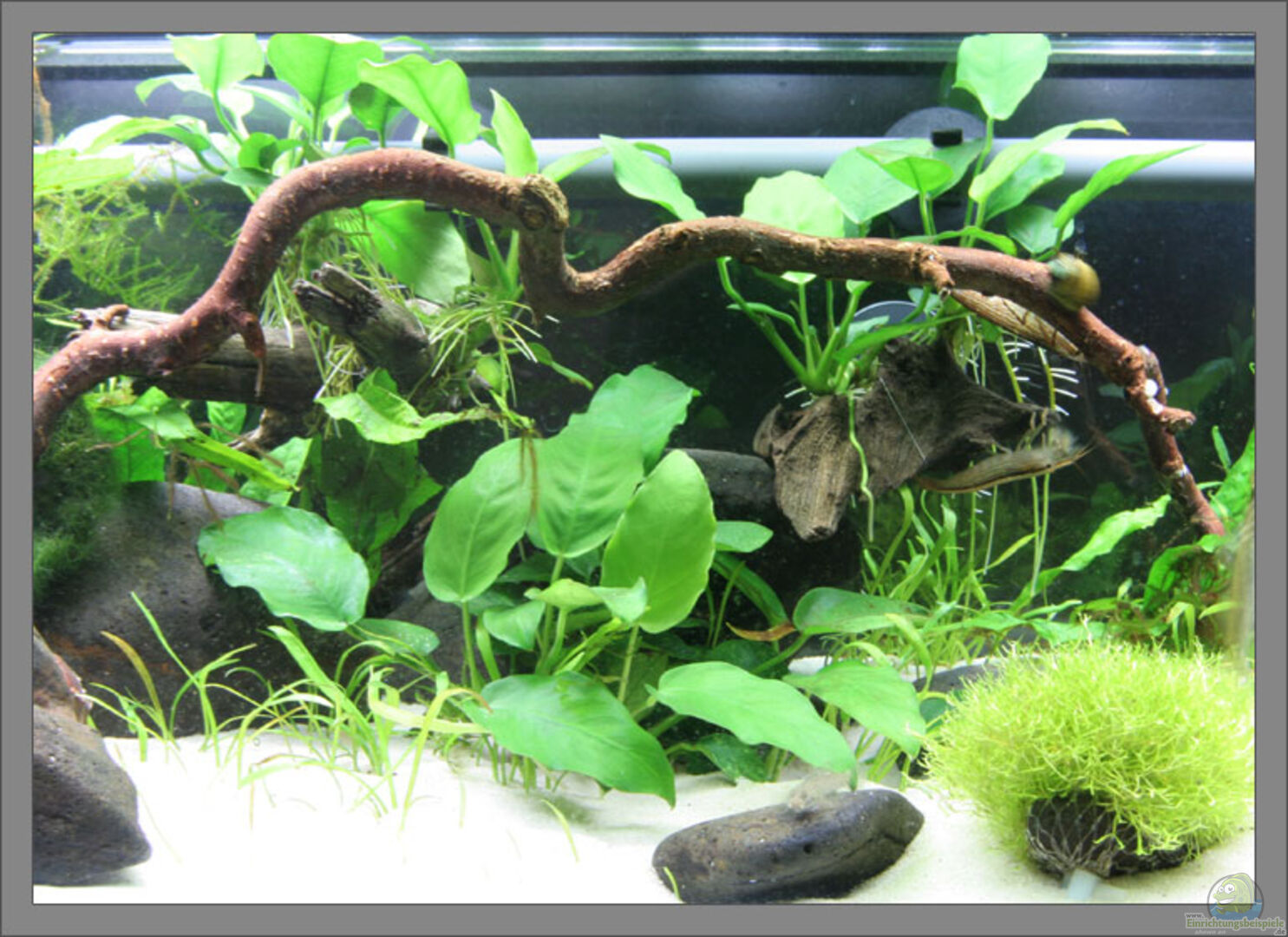 Dieses Aquarium ist ein Strömungsbecken, bei dem zwei Strömungspumpen das Wasser durch im Bodengrund verlegte Rohre anzusaugen und damit von rechts nach links zu bewegen. So ensteht grö??tenteils eine eindeutige Flie??richtung ohne grö??ere Rückströmungen. Das Becken ist eine Ma??anfertigung und passt genau in ein 80cm breites Billy-Regal hinein - daher auch der Name ´Billybach´.