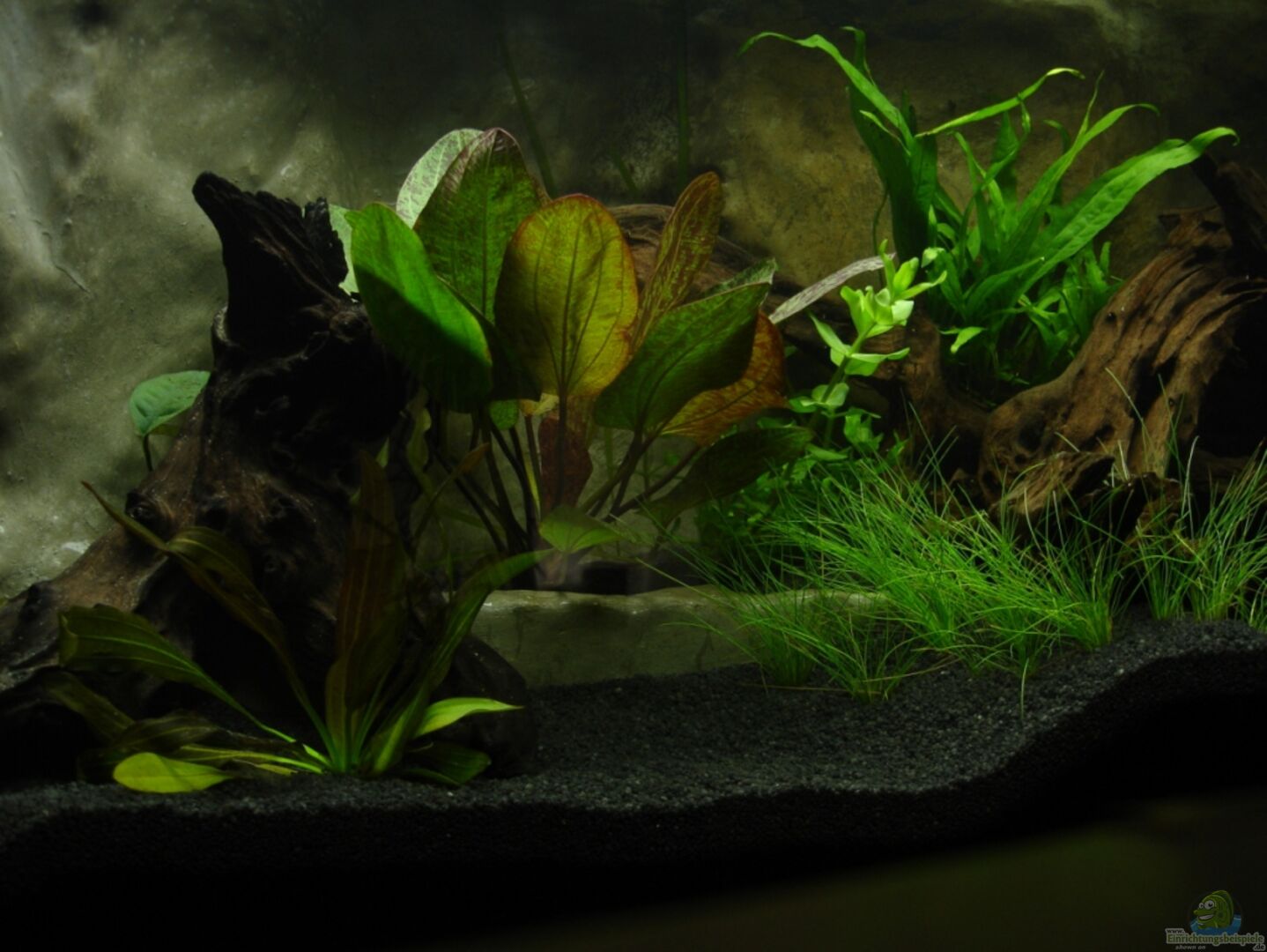 Wegen Wohnungsumräumaktion aufgrund von baldigem menschlichen Nachwuchses, musste das Becken umziehen und ist in dem Zuge auch gleich umgebaut worden. Rückwand Marke Eigenbau aus Styropor und Bauschaum. Beschichtet mit eingefärbtem Portlandzement und versiegelt mit Epoxitharz.