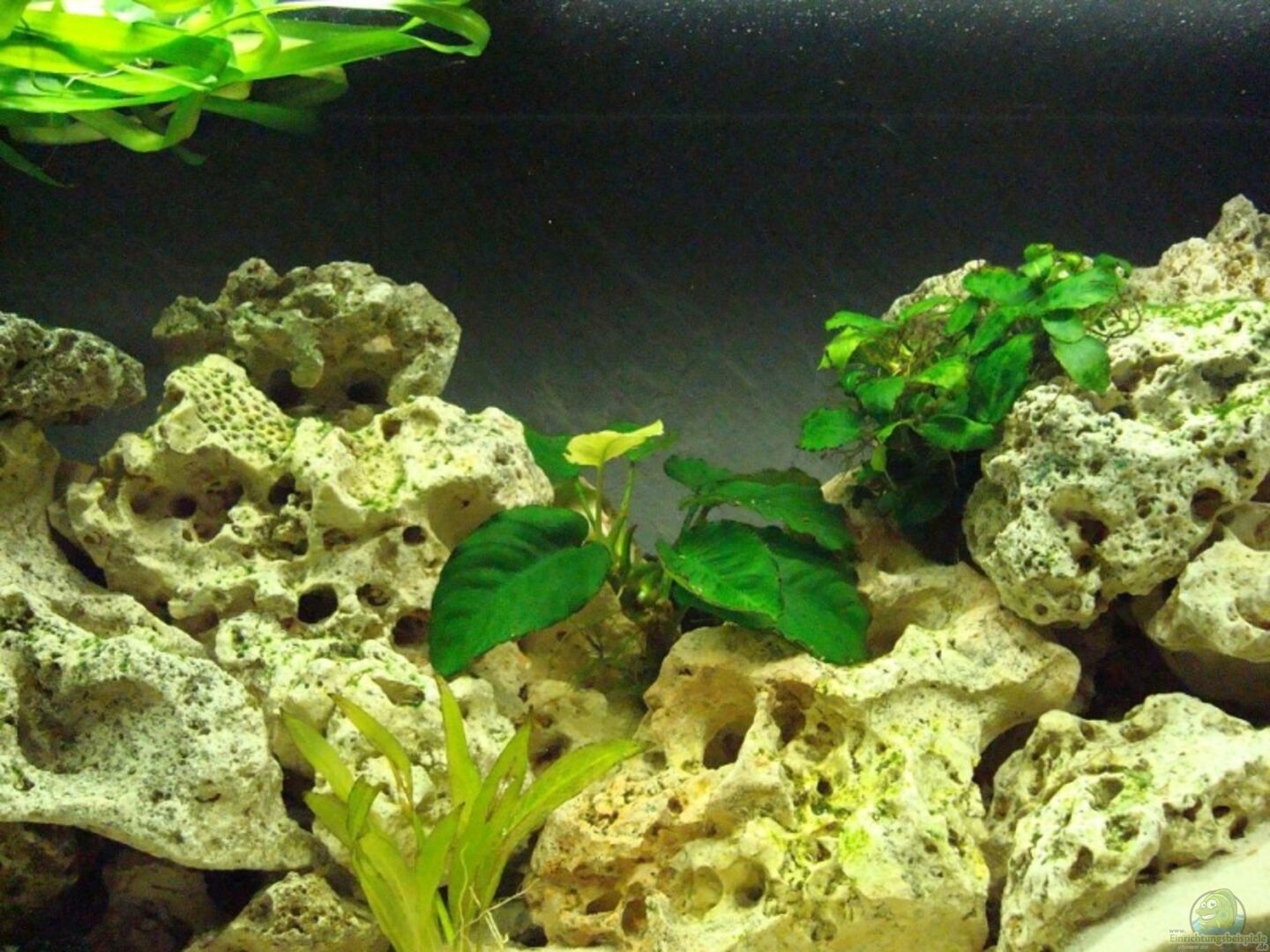 Als Rückwand habe ich zwei Kunststoffplatten mit Schifermuster im Aq. Au??erdem verwende ich ein spezielles Lichtleitersystem als Mondlicht, ich kann ich auch kleine Lichpunkte unterwasser erzeugen!