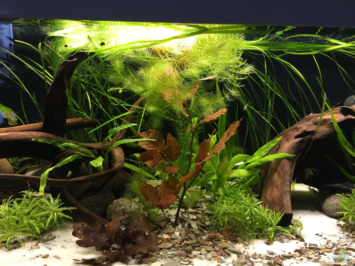 Massaquarium mit Optiwhiteglas auf 3 Seiten. Das Möbel dazu wurde bereits mit einer passenden Kiesblende von 5cm auf drei Seiten gebaut. Die Rückwand ist aussen mit einer schwarzen Folie beklebt und es gibt dadurch eine optische Tiefenwirkung.