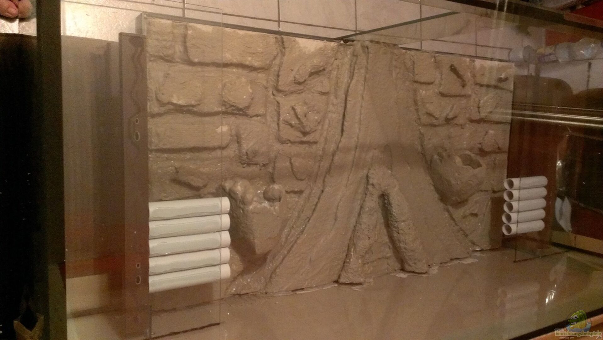 Selbstgebastelte 3D Rückwand aus Styropor und Fliesenkleber. Diese Rückwand hab ich nach dem Wassereinlauf wieder rausreisen müssen, die Farbe löste sich vom Fliesenkleber. Nach gründlicher Ursachenforschung kann es dafür nur eine Erklärung geben: die Restfeuchte des Flie??enklebers. Wenn man bedenkt, das Beton am Tag 1mm trocknet (hat mir ein Fachmann gesagt, bei idealen Bedingungen) hätte ich ja bei schlechten Bedingungen mindestens 14 Tage trocknen lassen müssen. Naja, wie schon einige [...]