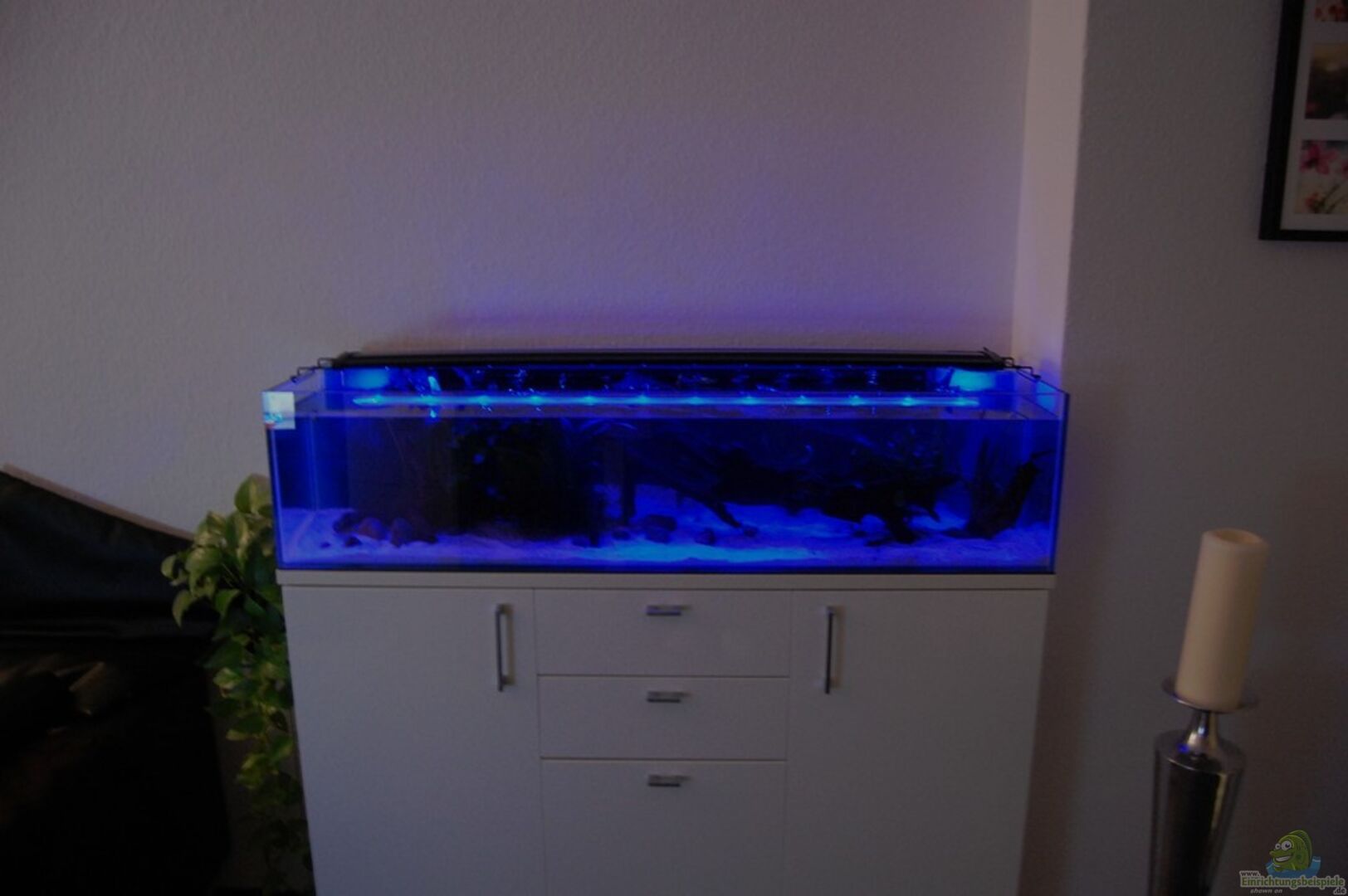 Wieder einmal handelt es sich bei dem Becken um eine Sonderanfertigung, die diesmal passend zum Sideboard gefertigt wurde. Hersteller ist die Firma Aquarienbau Voigt in Werneuchen bei Berlin. Das Becken wurde aus 8mm starkem Floatglas gefertigt und mit transparentem Silikon geklebt. Passgenau dazu habe ich mir eine dreiteilige Glasabdeckung von der Fa. Voigt anfertigen lassen, welche in zwei Kunststoff-E-Profilen auf der gesamten Beckenlänge verschiebbar ist. Als zusätzlichen Service wurden mir [...]