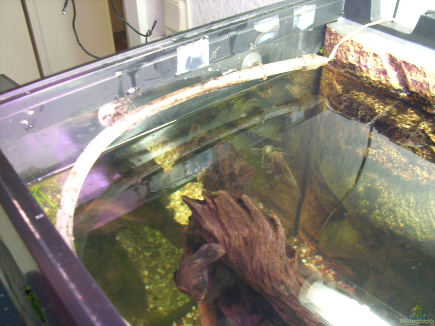 - Fluval Regelheizer (200 Watt) -> eingestellt auf 26° - Belüftungspumpe mit Sprudelstein: nicht in Betrieb (ist für Notfälle) - Marina Aqua Minder: gibt mir die genaue Temperatur an - Herkömmliches Thermometer (Glasrohr...), ich verlasse mich nie ganz auf die Technik. - 2x mechanische Zeitschaltuhr: 1x für Neonröhren/ 1x für das Mondlicht - Dennerle CO2 Anlage: Comfort Line für Aquarien bis 300 Liter 1x CO2 Einwegvorratsflasche (500 g) 1x CO2 Druckminderer 1x CO2 [...]