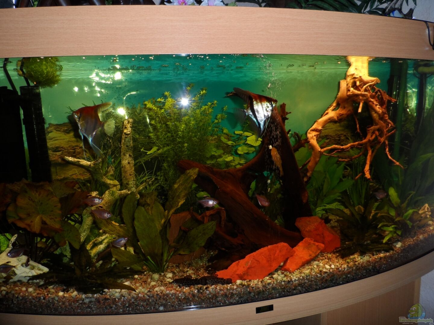 -2 Rotrückenskalare ( Romeo und Julia ), Pterophyllum Scalare -9 Kirschsalmler, Hyphessobrycon socolofi -2 Antennenwelse (das Männchen mit Namen SCHWEINI!) ist ein gelber Albino, Ancistrus aff.dolichopterus -5 Ohrgitter-Zwergharnischwelse, Otocinclus cf. affinis 2 Engelswelse, Pimelodus pictus -2Zwergbuntbarsche(ein Paar), Apistogramma agassizii und diverse Schneckenarten -die 2 Zwergbuntbarsche sind leider verendet aber wir wissen ja das die Lebenserwartung dieser Gattung nicht sehr [...]