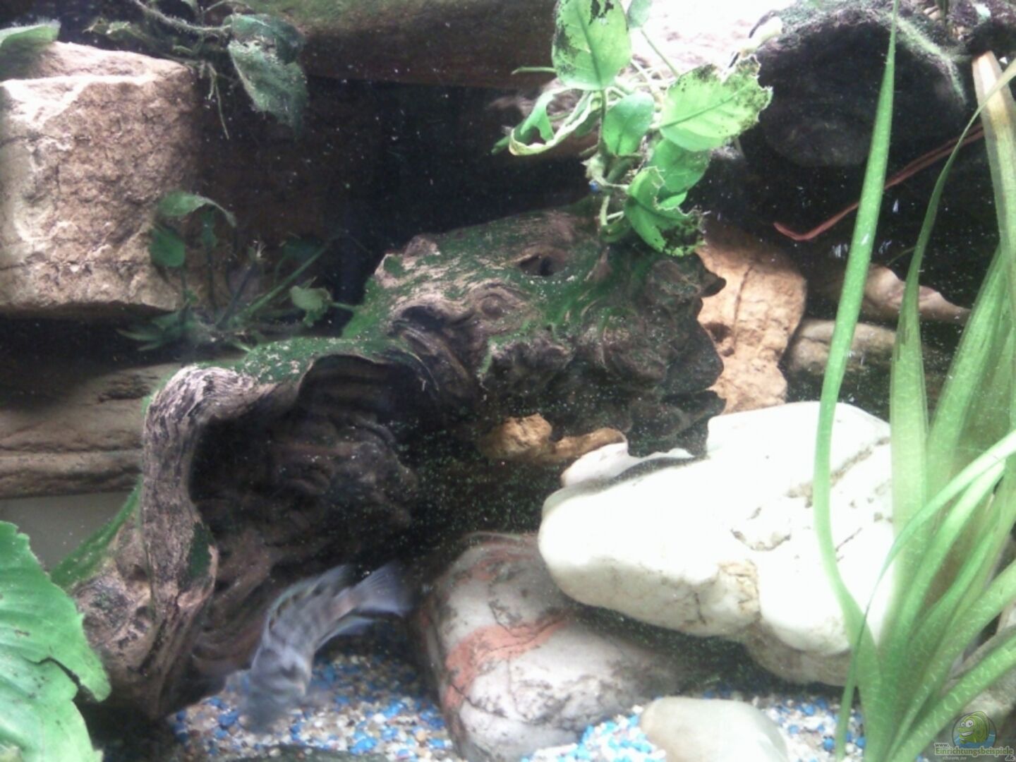 2 Moorkienwurzeln, hauptsächlich für die Welse. Steinaufbau über die ganze Länge der bis zur Wasseroberfläche reicht.Die Steine sind mit Punkten Aquariensilikon verbunden und der Aufbau steht knapp vor der hinteren Scheibe und ist vollständig durch und hinterschwimmbar.Au??erdem bietet er ohne ende Höhlen und Verstecke für die Fische.Die Steine sind überwiegend gro??e Kiesel und ein paar Sandsteine.Die Steine habe habe ich alle unter einer nahen Brückenunterführung gesammelt.Die Steine [...]