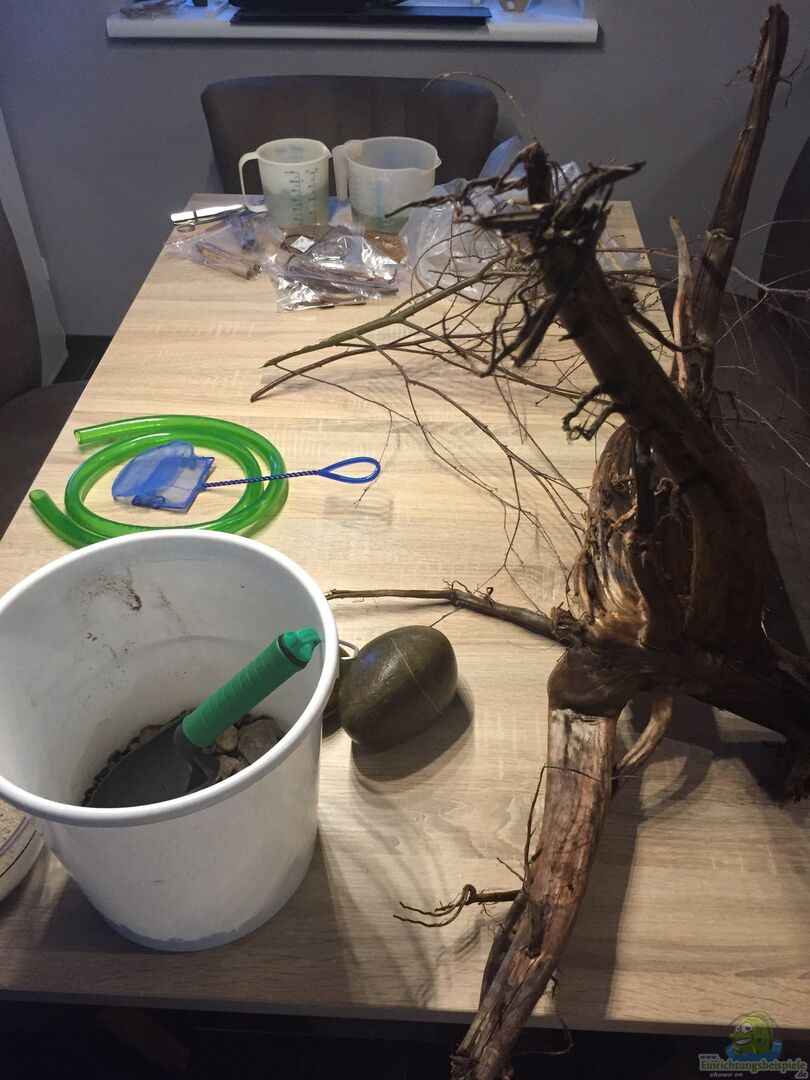 Leider wurde ich in unserer örtlichere Zoohandlung wegen einer gro??en Moorkienwurzel nicht fündig und musste deshalb eine im Internet bestellen. Einen grö??eren arm musste ich dann doch noch von der Wurzel abschneiden. Für die Flussholzoptike bin ich an einen Fluss in der Nähe gefahren. Dort konnte ich ein paar Birkenäste, Eichenäste, Totholz sowie ein wenig extra Laub sammeln. Für den Schwarzwassereffekt habe ich mir im Internet zusätzlich noch Seemandelbaumblätter in verschiedenen [...]