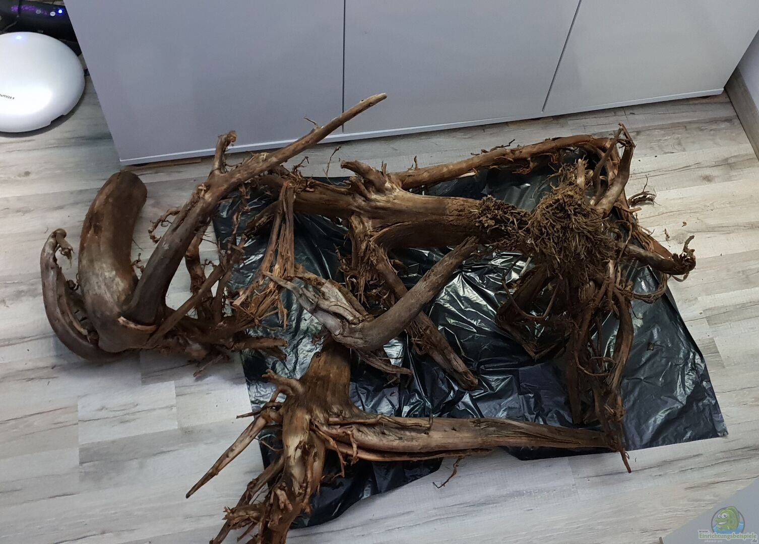Da habe ich mich für gro??e Moorkienwurzeln entschieden. Schön verzweigt, so wirkt es natürlicher, als würden die Wurzeln der Bäume ins Wasser wachsen. Dazu noch eine JatiWurzel und schwarze Lava, diese dient als Versteck für meine maronis. Anfangs waren die noch schreckhaft, kamen nur selten raus. In der Zwischenzeit haben die sich richtig eingelebt und fühlen sich richtig wohl. Weiteres kam jede Menge Buchen und Eichenlaub dazu. So sieht es noch natürlicher aus, finde ich. [...]