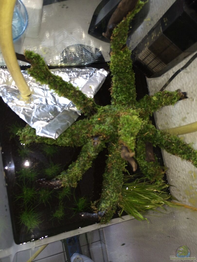 eine Moorkienwurzel Wichtig war mir, dass es sich um eine Wurzel am Stück handelt. Dies soll auch in der Gestaltung später hervorgehen. Ich habe die Wurzel auf eine Plexiglasplatte geschraubt einen Stein auf die Platte gelegt und dann das Soil draufgeschüttet - hat bis jetzt Gehalten. Die Idee war trotzdem scheisse, das Soil sinkt in sich zusammen und hat den Stein freigelegt - ja ganz witzig und immer schön glänzend wegen den Schnecken, aber gewollt wars halt nicht. Habe das Problem [...]