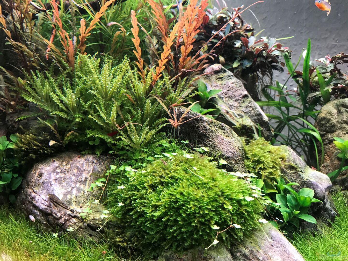 Als Pflanzenbesatz habe ich viele meiner Pflanzen aus dem vorherigen Scape übernommen, sodass ich hier einiges an Kosten sparen konnte. Der momentane Pflanzenbestz liest sich wie folgt: diverse Cryptocorynen, becketii, parva etc. für den Mittel/Hintergrund Cryptocoryne crispatula für den Hintergrund Octopus für den Hintergrund Hygrophila pinatifida und araguaia für den Mittel / Hintergrund Anubias petite für die Felsspalten diverse Moose für die Felsspalten Hydrocotyle tripartita [...]