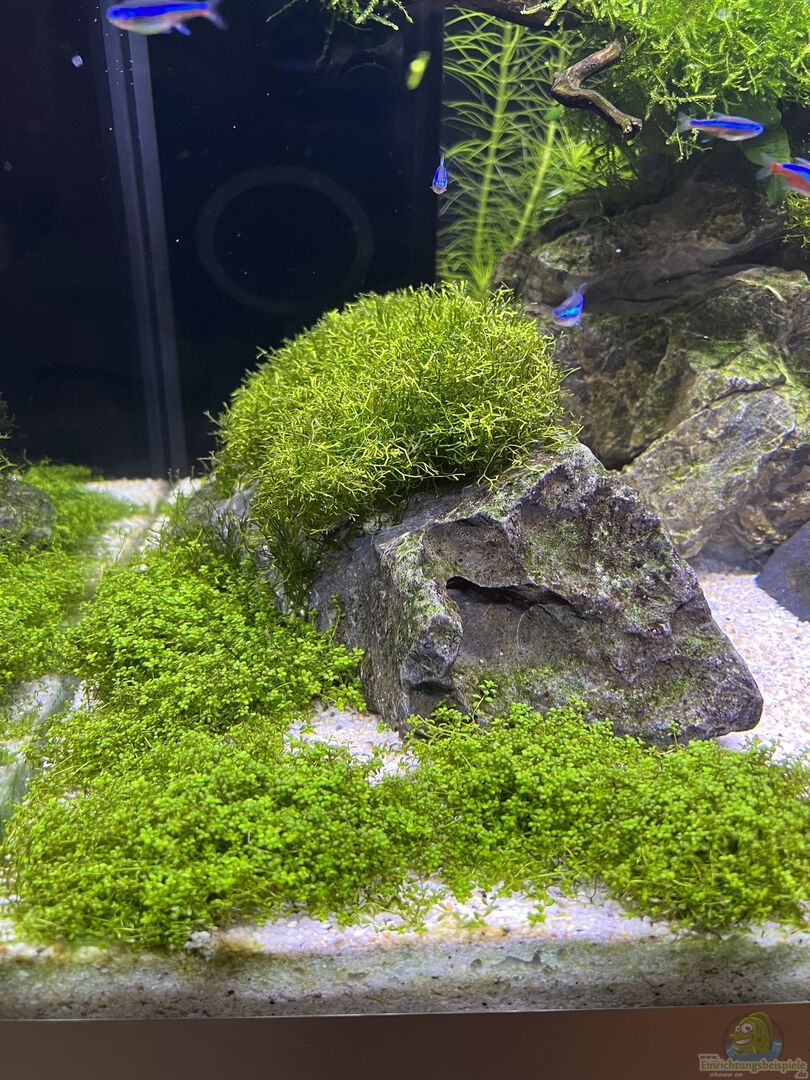 Hintergrundpflanzen: 2?? Pogestomon Erectus 1?? Cyperus Helferi Mittlerer Teil: Dekowurzel bepflanzt (=geklebt) mit Taxiphyllum ???Spiky??? (Invitro) Steine bepflanzt (=geklebt) mit Riccia fluitans (Invitro) und Anubias barteri Vordergrundpflanzen: Hemianthus Callitrichoides Cuba (bin mir hier aber nicht mehr ganz sicher???) Düngung mit JBL Ferropol 1x pro Woche 10ml (nach Teilwasserwechsel) sowie 2 Tropfen täglich