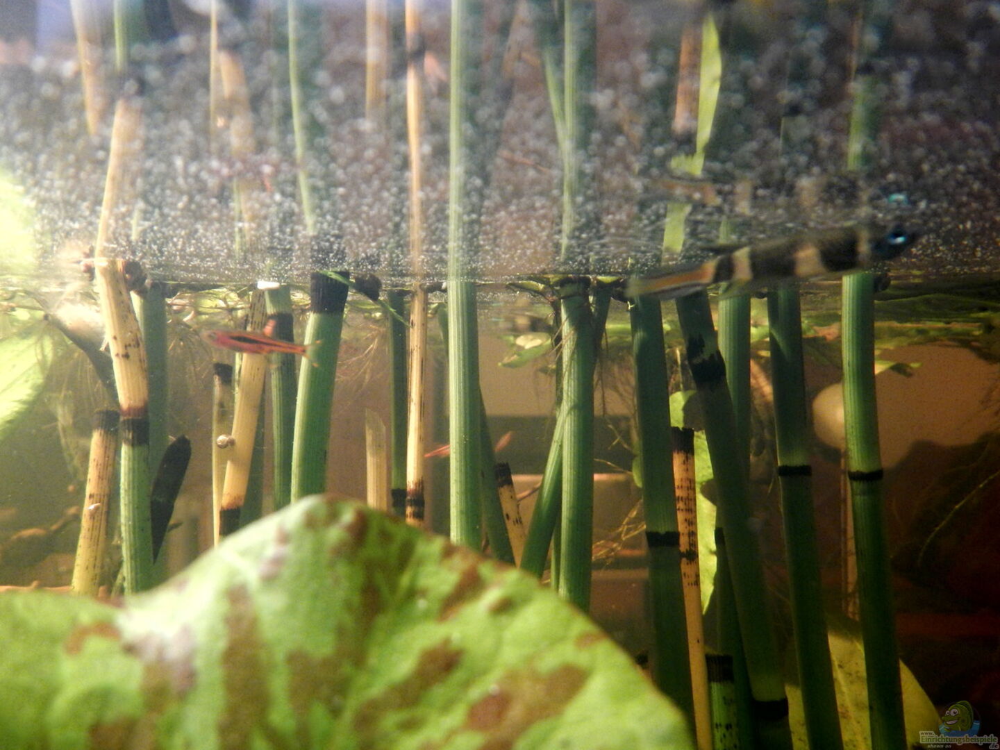 Fische Boraras brigittae (Moskito-Bärbling) 30w/20m Epiplatys annulatus (Ringelhechtling) 6w/1m Pangio kuhlii (Halbgebändertes Dornauge) inzwischen 10w/8m, angefangen habe ich mit 3/3 :) Pangio oblonga (Schwarzes Dornauge) 6 Tiere, Geschlecht nicht unterscheidbar Otocinclus vittatus (Ohrgitterharnischwels) 3w/2m Garnelen Caridina babaulti spec. "Green" (Grüne Zwerggarnele) Schnecken Brotia henriettae (Genoppte Turmdeckelschnecke) Brotia herculea (Riesenturmdeckelschnecke) Melanoides [...]