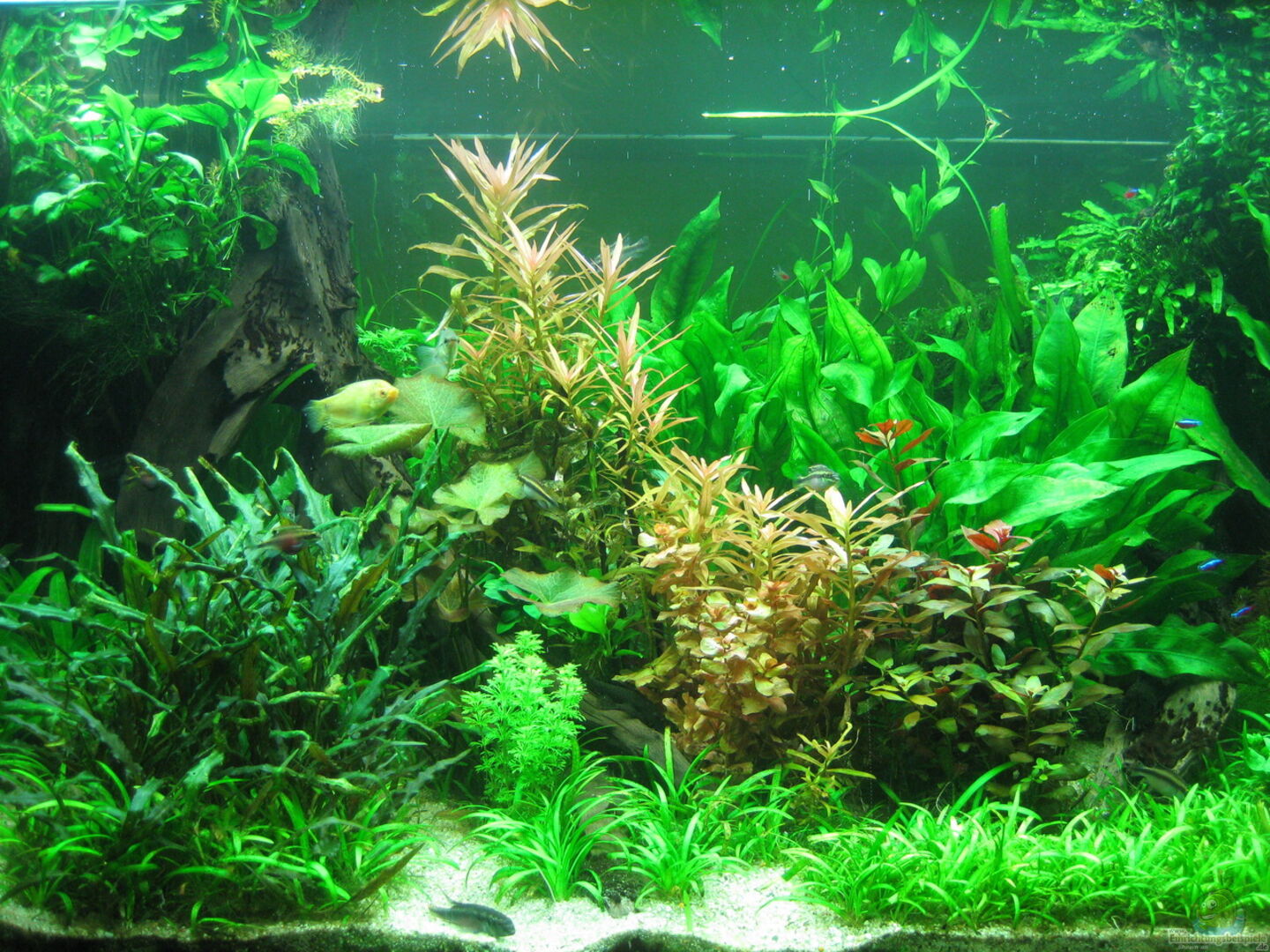 Glasdicke 12mm. Das Becken hat keine Bohrungen, sondern links vom Becken sind 10% (20cm, ca.100 Liter) für einen gro??en Biofilter abgetrennt, so dass das Wasser nur innerhalb des Beckens von links nach rechts gepumpt wird. Das Becken stammt inkl. Abdeckung und Leuchtbalken von Klaus Ruffert und seinem Team "Diamantaquarien".