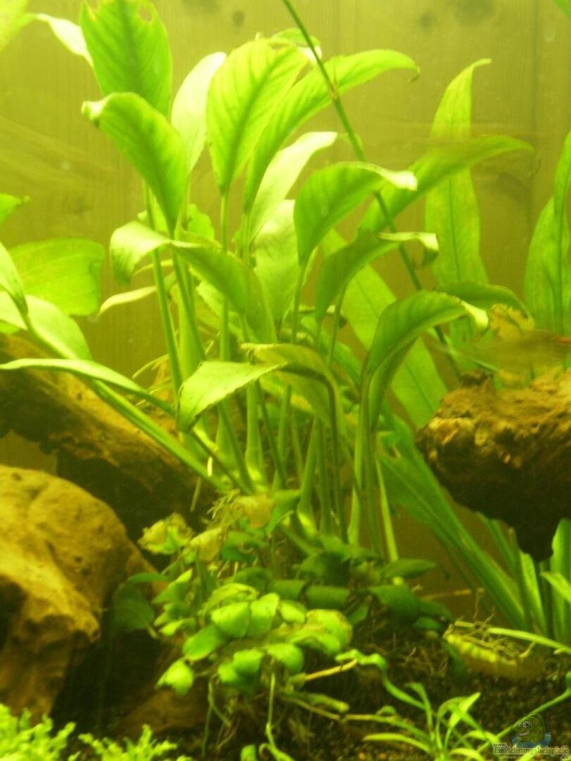 Vordergrund: - Neuseelandgras ( Lilaeopsis novae zelandiae ) - Daonoi ( Pogostemon helferi ) - Gewöhnliches Pfeilkraut ( Sagittaria sagittifolia ) - Flutendes Pfeilkraut ( Sagittaria subulata ) - Samolus Froschlöffel ( Echinodorus parviflorus tropica ) - Wasserkelch ( Cryptocoryne amicorum )