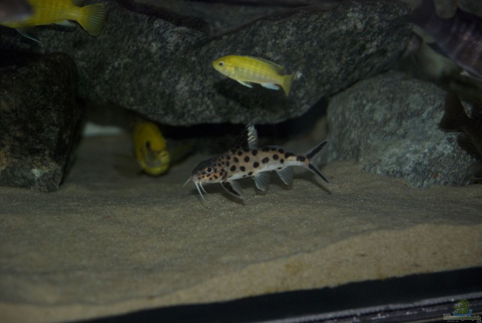 Synodontis multipunctatus 2/4 (?) (Vielpunkt Fiederbartwels Kuckuckswels) - Labidochromis caeruleus Yellow 1/3 + 5 Halblinge (Goldener Yello) - Aulonocara sp. - Red Rubin - 1/2 (Stuartgranti Maleri Kaiserbuntbarsch Baenschi Chipoka Utaka) -