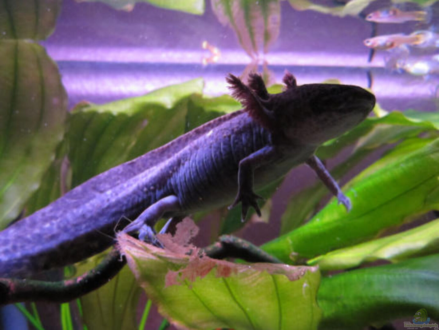Stand aktuell: 2 Antennenwelse (braun m, Albino w) 3 w + 1 m (Albino) Axolotl ca. 2 Jahr alt 2 m (Albino) Axolotl ca. 3 Jahre alt 2 Goldfische ...Guppys (ursprünglich als ´Futterproduzenten´ im Becken gedacht - funktioniert allerdings im Becken nicht - sind einfach zu lecker)