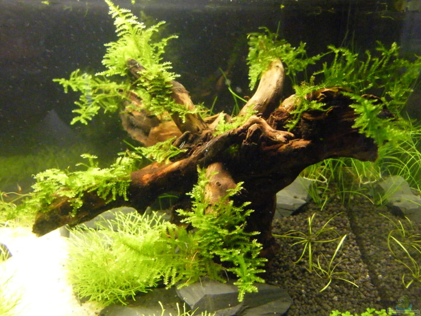 Schiefer, Morkinwurzel mit Moos bewachsen Ziel ist ein Baum unter Wasser mit runder Krone