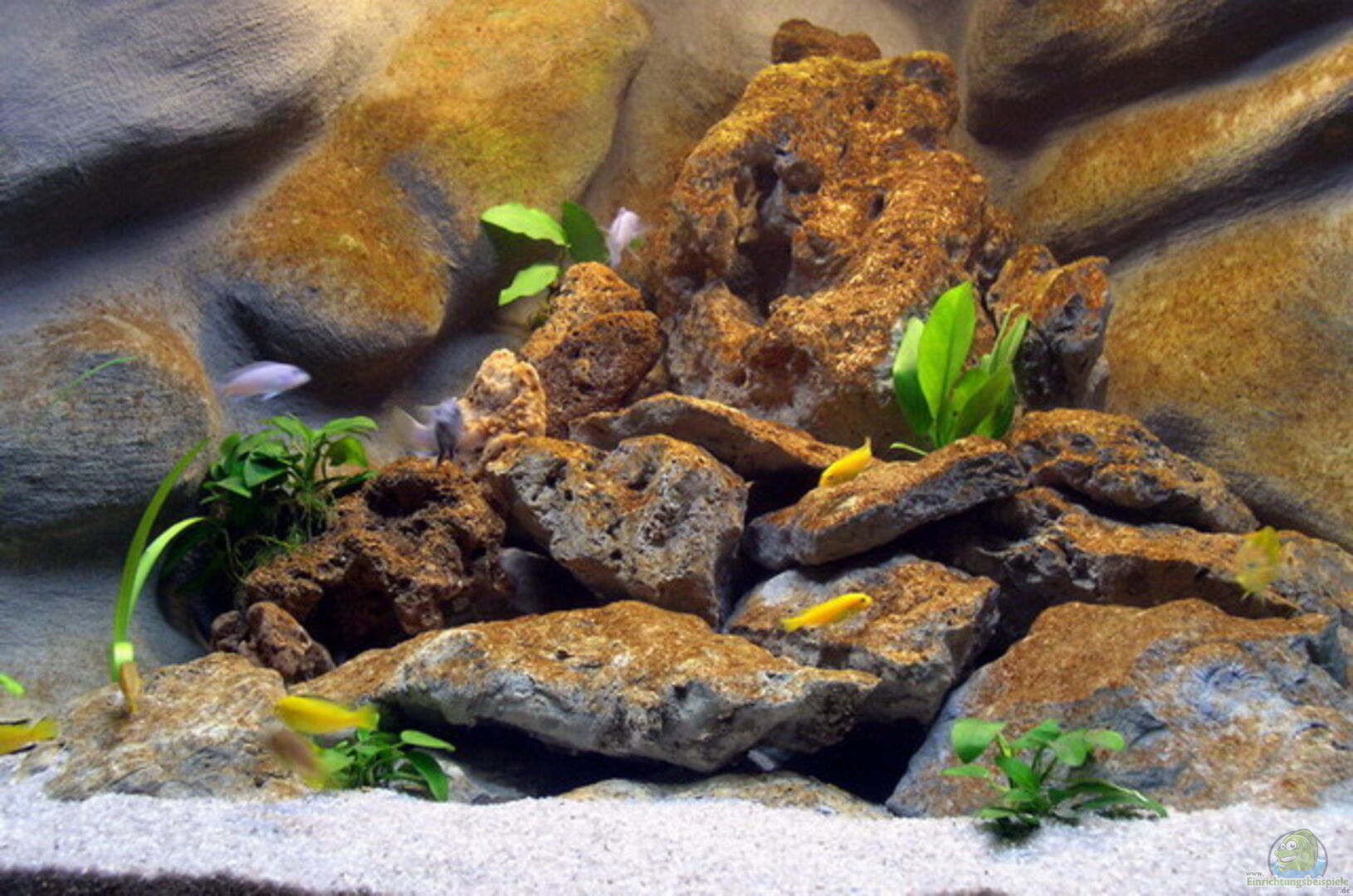 Es handelt sich hier um ein wulstverklebtes Deltabecken mit einer Schenkellänge von 85cm und einer Höhe von 70cm. HErzlichen Dank hier auch nochmal an Herrn Jebramek für den Bau. http://www.aqua-terra-jebramek.de/ Das Becken steht stabil auf einen selbstgebauten Unterschrank aus 35mm 4-kant Eisenrohren, die zwischen zwei Rahmen aus L-Eisen geschweißt wurden. Im oberen Rahmen liegt eine 40mm Küchenarbeitsplatte und darauf eine 10mm starke Styroporplatte und nochmals einer Aquariumunterlage [...]