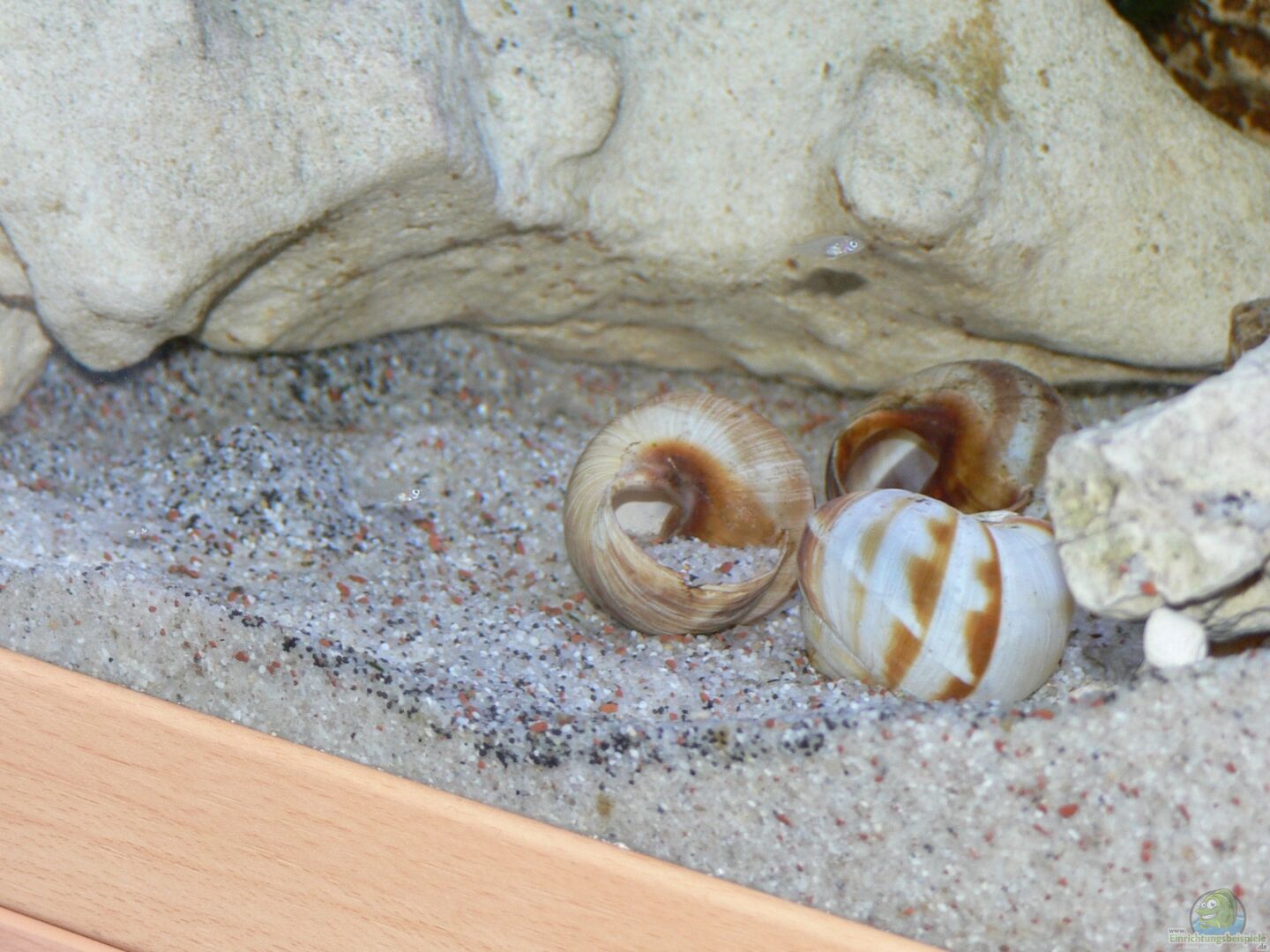 Steckbrief Schneckenbuntbarsche 5Stk. Neolamprologus multifasciatus (ein Pärchen gesichtet) +3+5? Nachwuchs Grö??e: Männchen werden bis 4 cm gro??, Weibchen bleiben mindestens 1 cm kleiner. Wasser pH-Wert über 7, eher 8, ggf. Filterung über Muschelgru??; möglichst hartes Wasser; Temperaturen zwischen 25 und 27°C. Haltung Bodenfisch, beansprucht aber auch einigen Platz über seinem Revier; Bodengrund sollte Sand sein, mit Steinen und Pflanzen als Reviergrenzen. [...]