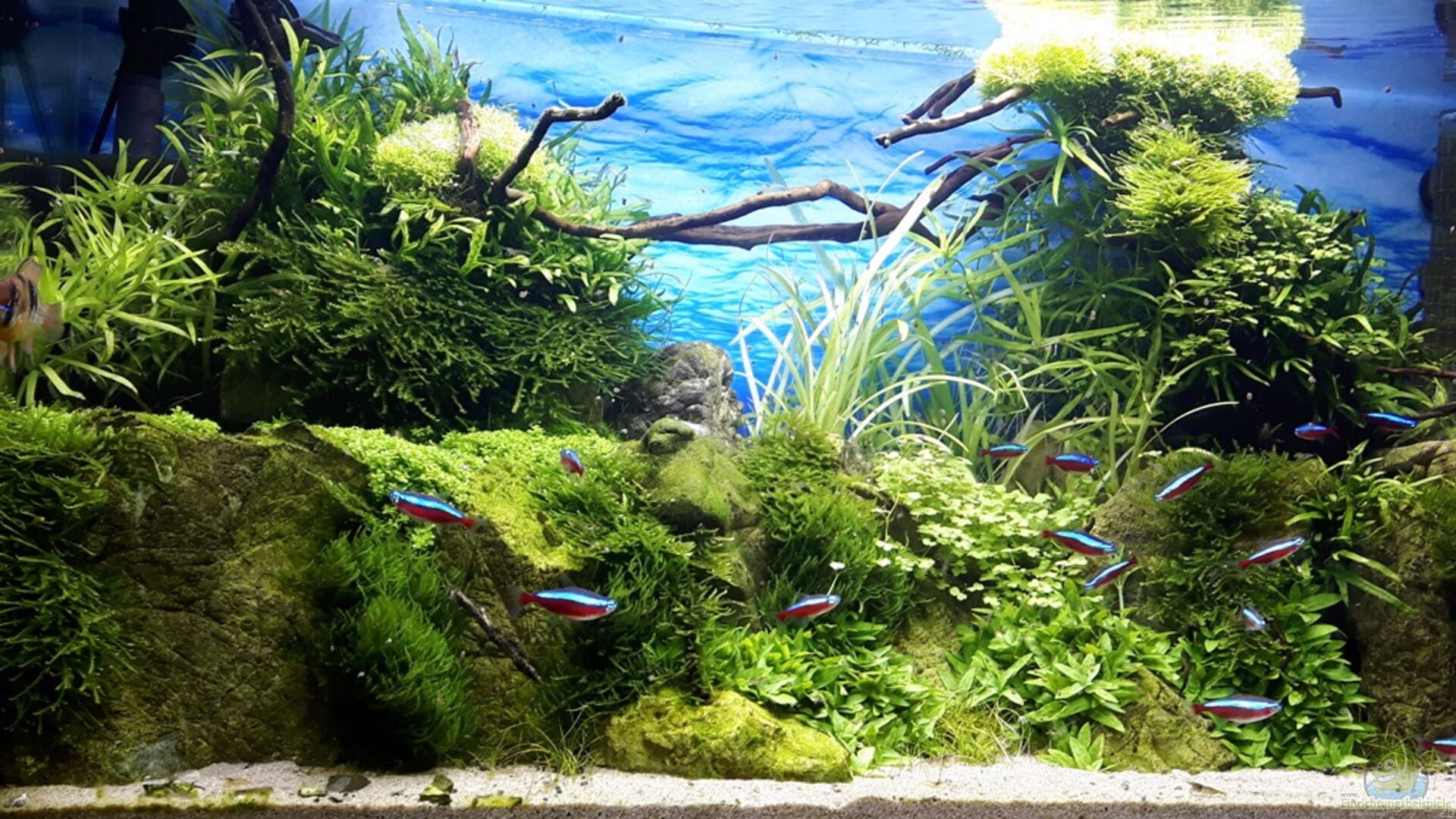 Ich habe mir ein Weissglas AQ zugelegt, da hier die Farben der Fische und Pflanzen noch besser "rüberkommen". Habe mir im Nachgang von meinem Schreiner noch einen neuen Unterschrank bauen lassen.