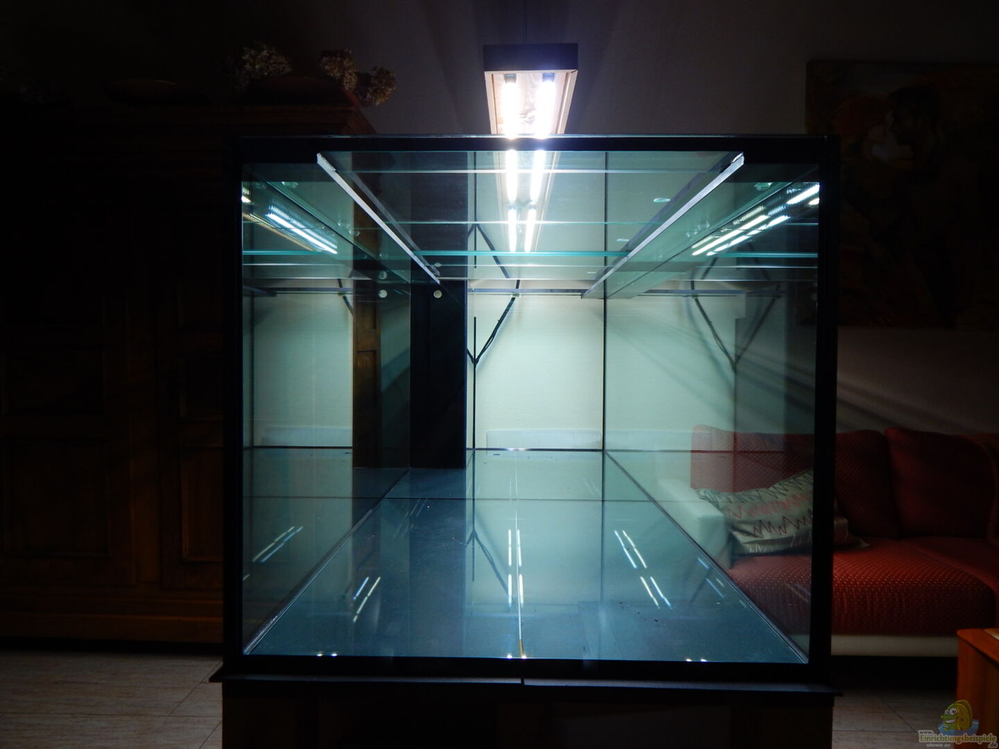 Spezialanfertigung nach Zeichnung der Firma Wild Aquarien 15mm Glas mit Rundumverstrebung und Mittelstrebe Geteilte Bodenscheibe Bohrung für Filterauslass und Wasserwechsel