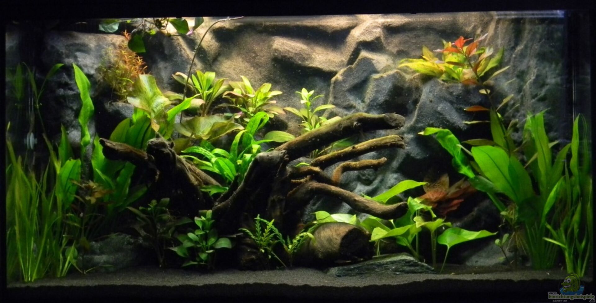 Die Rückwand ist Marke Eigenbau aus Bauschaum, Portlandzement, Styropor. Ich habe ein paar Joghurtbecher für die Pflanzen eingebaut. Versiegelt ist das ganze mit Epoxitharz.