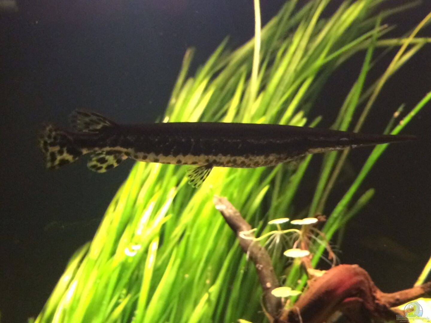 3x Gefleckter Knochenhecht Lepisosteus oculatus Grö??e ca. 13-15 cm Geschlechter wohl 1/2 (w/m). Ist in dem Alter noch schwer zu bestimmen. Aber einer wirkt etwas kräftiger und breiter. 1x Neolamprologus pulcher (sucht noch ein neues Zuhause) Ca. 20-50 Endeler Guppy Mix (je nach Appetit der Knochenhechte). Werden regelmä??ig aus eigener explodierender Zucht nachgefüllt oder vermehren sich selber im Becken. Wer einmal Guppies hatte wei?? wovon ich reden, der Millionenfisch. 1x [...]