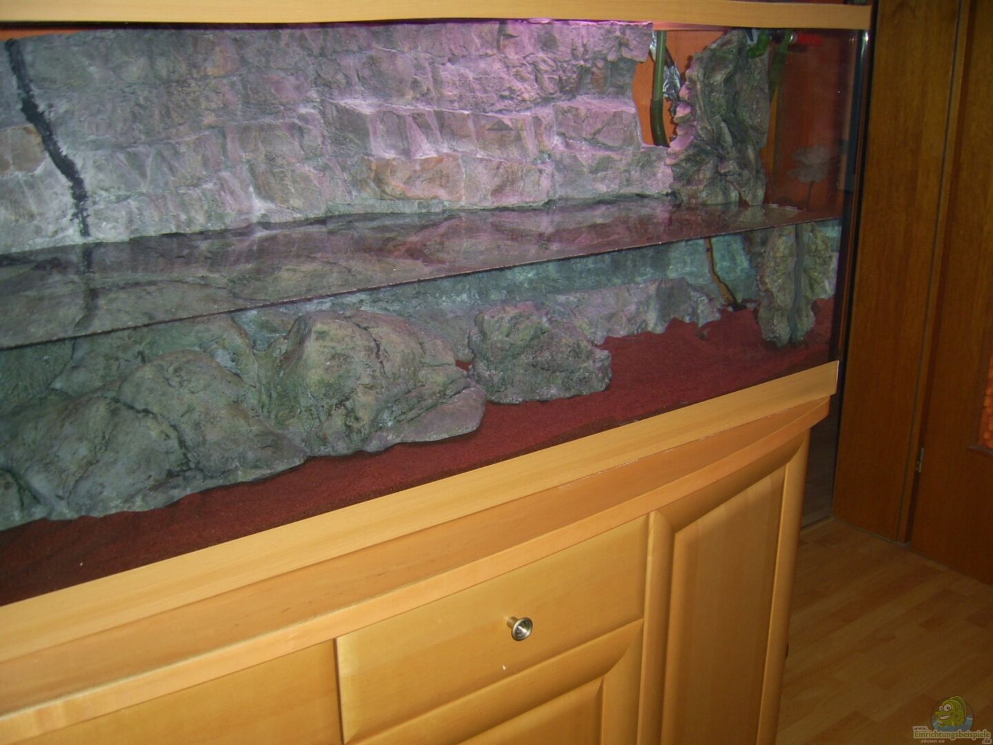 Altes Becken im Januar 2013 komplett leergeräumt. Hatte mir bei meinem (alten Becken) zwar sehr viel Mühe gegeben mit selbstgebauter Rückwand, aber immer wieder sah ich Wände von Rockzolid oder Back to Nature, die schon sehr geil aussahen. Also muss ich die auch haben!! Also nochmal: Becken von Aquatec , mein drittes übrigens und noch nie Probleme gehabt. Sto??verklebt 12mm Glas mit Sicherheitsnaht. Eine Querstrebe, keine Bohrungen. Steht auf einer stabilen Anrichte mit einer zusätzlichen Holzkonstruktion, [...]
