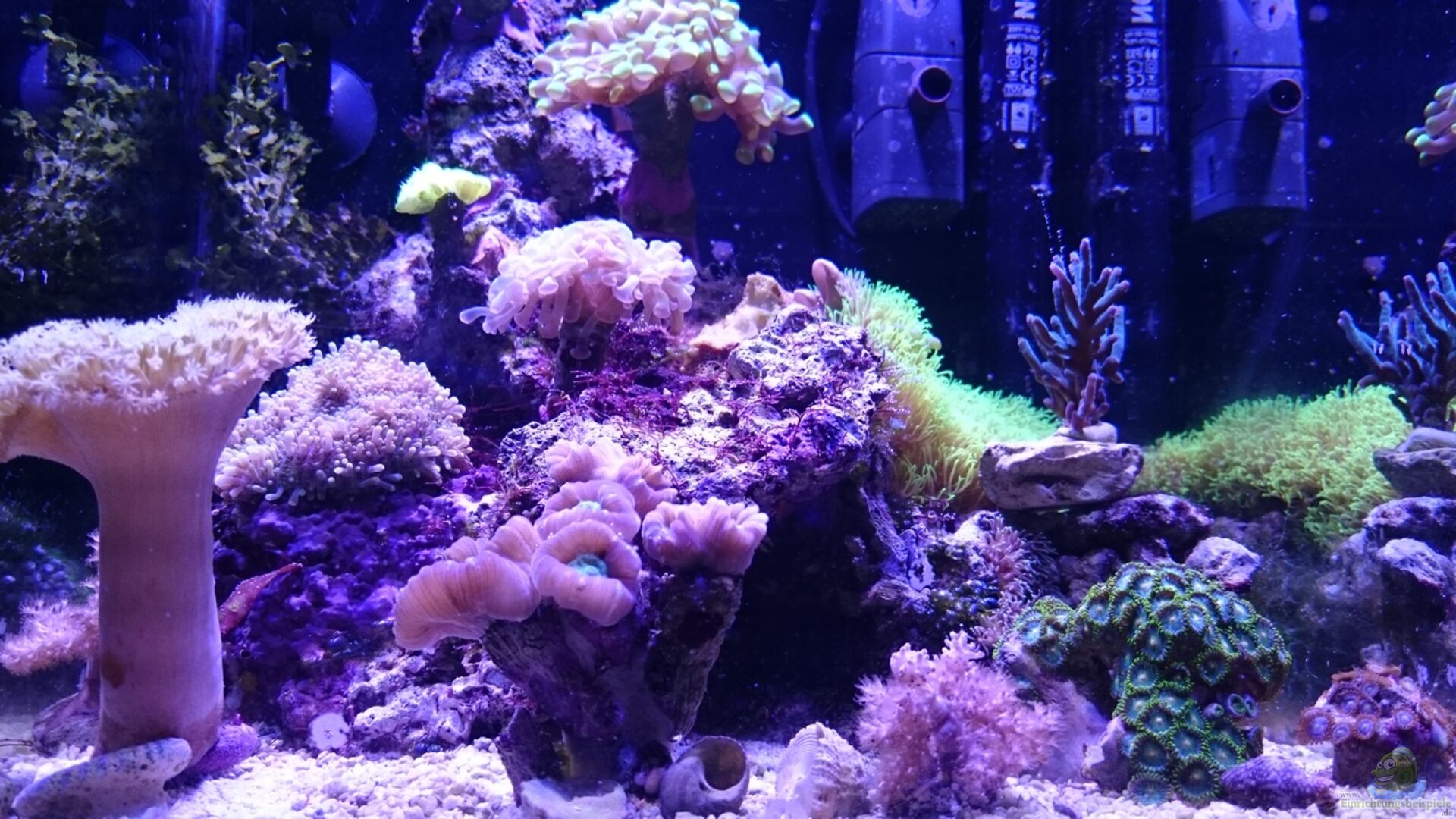 Läuft ohne Abschäumer, nur mit zwei kleinen Eheim Pumpen (eine als Skimmer) Der gesamte Energieverbrauch liegt bei nur ca. 30W.