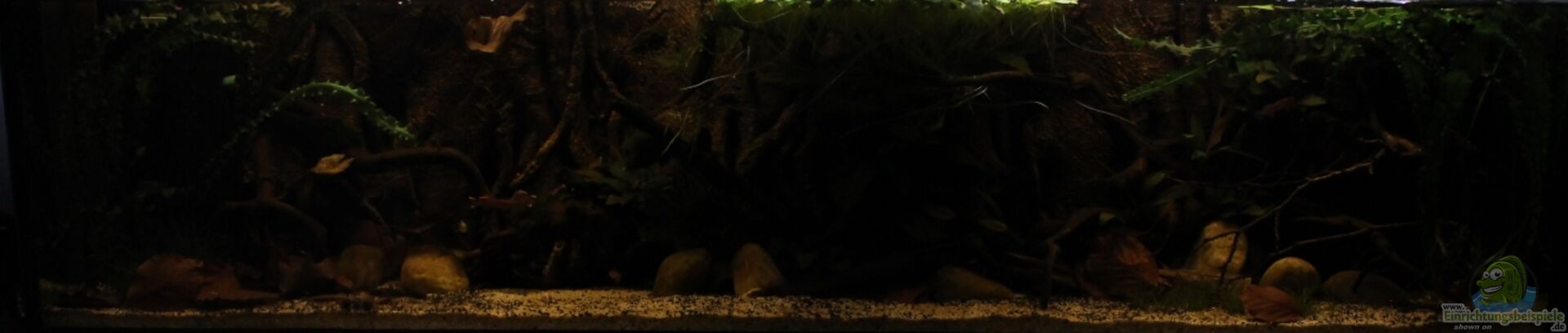 das Becken ist eine Sonderanfertigung von USW Aquaristik es wird aus 10mm Floatglas gefertigt, wobei die Frontscheibe aus Wei??glas ist. Zum Schrank ist zusagen, das es sich hierbei um handelsübliche Kommoden handelt, es sind zwei, die nebeneinander gestellt wurden. Die eigentlichen Trägerplatten bestehen aus 17er Platten, um eventuelle Unebenheiten auszugleichen, kommt noch eine Trägerplatte oben drauf (und eine Schaumgummi Unterlage). Die Trägerplatte ist eine 19mm Buchen Leimholzplatte, [...]
