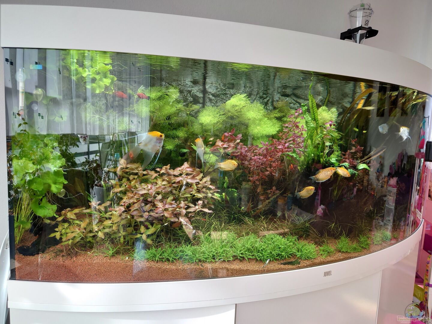 Wie üblich bei Vision Becken von Juwel eine gebogene Frontscheibe mit Sto??verklebung. Becken steht auf dem originalen Unterschrank von Juwel